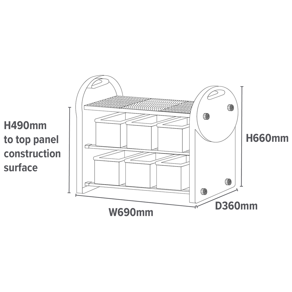 Maximize your child's playtime and minimize the clutter with the Liberty House Toys Kids 6 Bin Toy Organiser Unit. This unit offers a clever storage solution, featuring a sturdy construction tabletop and two shelves, each designed to hold three included plastic storage boxes. Crafted from durable, non-toxic plastic with smooth, rounded edges for safety, the unit also includes convenient hand holes for easy movement. Display toys at an angle within the boxes for easy visibility and access, or keep them flat for discreet storage. Perfectly compatible with leading brick brands, this organiser helps children maximize their playtime potential. Suitable for ages 2+. Organiser Dimensions: H660 x W690 x D360mm. Box Dimensions: H130 x W200 x D300mm.