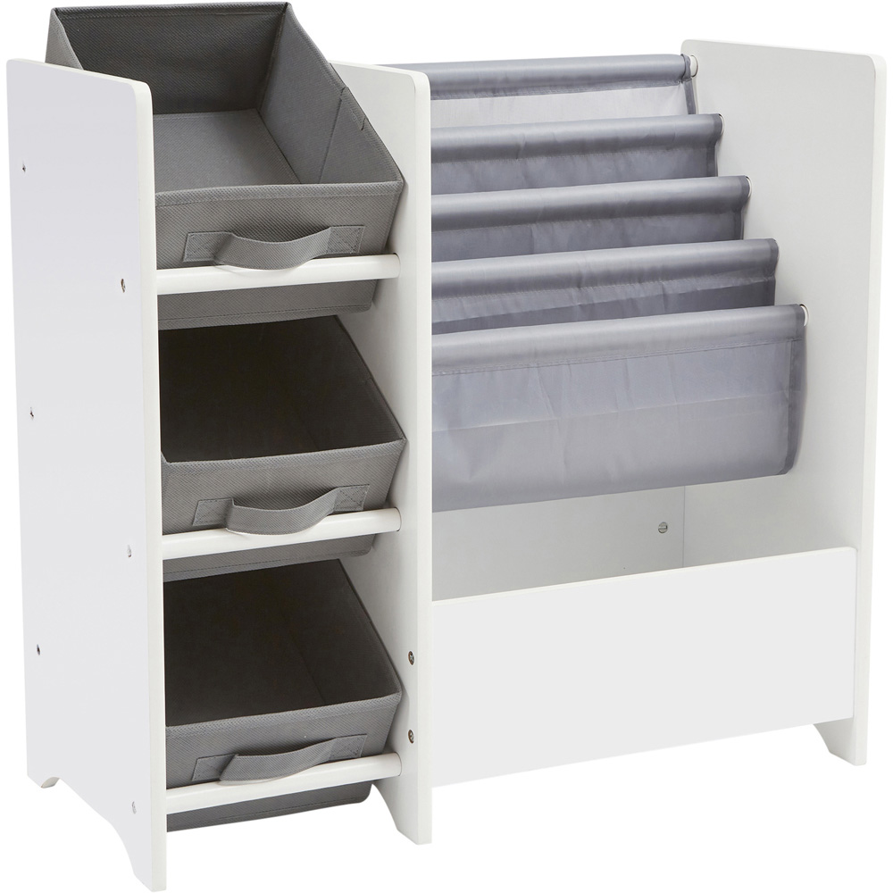 Give your child's room a stylish and organised upgrade with the Kids White Book Display and Storage unit. This cleverly designed unit blends functionality and aesthetics to create a clutter-free space that inspires a love of reading. Built from sturdy wood with a durable lacquer finish, it's tough enough for busy playrooms and bedrooms. The scratch-resistant surface ensures it stays looking pristine, while the rounded corners enhance safety. Convenient fabric storage boxes neatly hold books, toys, art supplies, and more. Cleaning is a breeze with a damp cloth. Lightweight for easy movement and rearranging, this unit adapts to your child's evolving needs. Suitable for ages 2 and above, it's a versatile addition to any playroom or bedroom. Storage Unit Dimensions: H600 x W650 x D300mm. Storage Box Dimensions: H130 x W200 x D250mm.