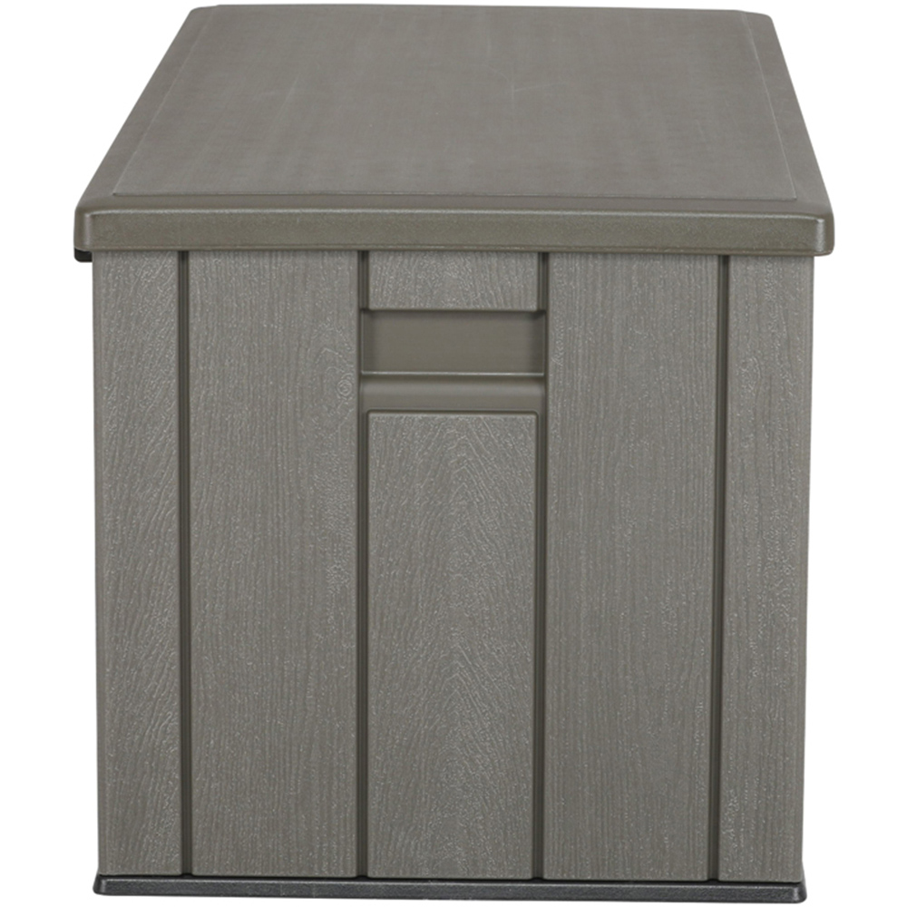 Organising your outdoor space just got easier. Need extra storage for gardening tools, lawn equipment, games, or even patio cushions? This deck box offers a stylish and practical solution. Its robust construction boasts a wood-grain texture and rough-cut finish, delivering the charm of wood without the upkeep. Built to withstand the elements, it’s UV-protected and weather-resistant, safeguarding your belongings for years to come. The lid features a secure, spring-loaded hinge for effortless opening and closing, and is lockable (lock sold separately) for added peace of mind. Conveniently sized side handles allow for easy relocation around your garden or patio. Durable enough to even double as a seat, this deck box is the ultimate blend of functionality and style. Dimensions: H69 x W151 x D72cm Weight: 28g.