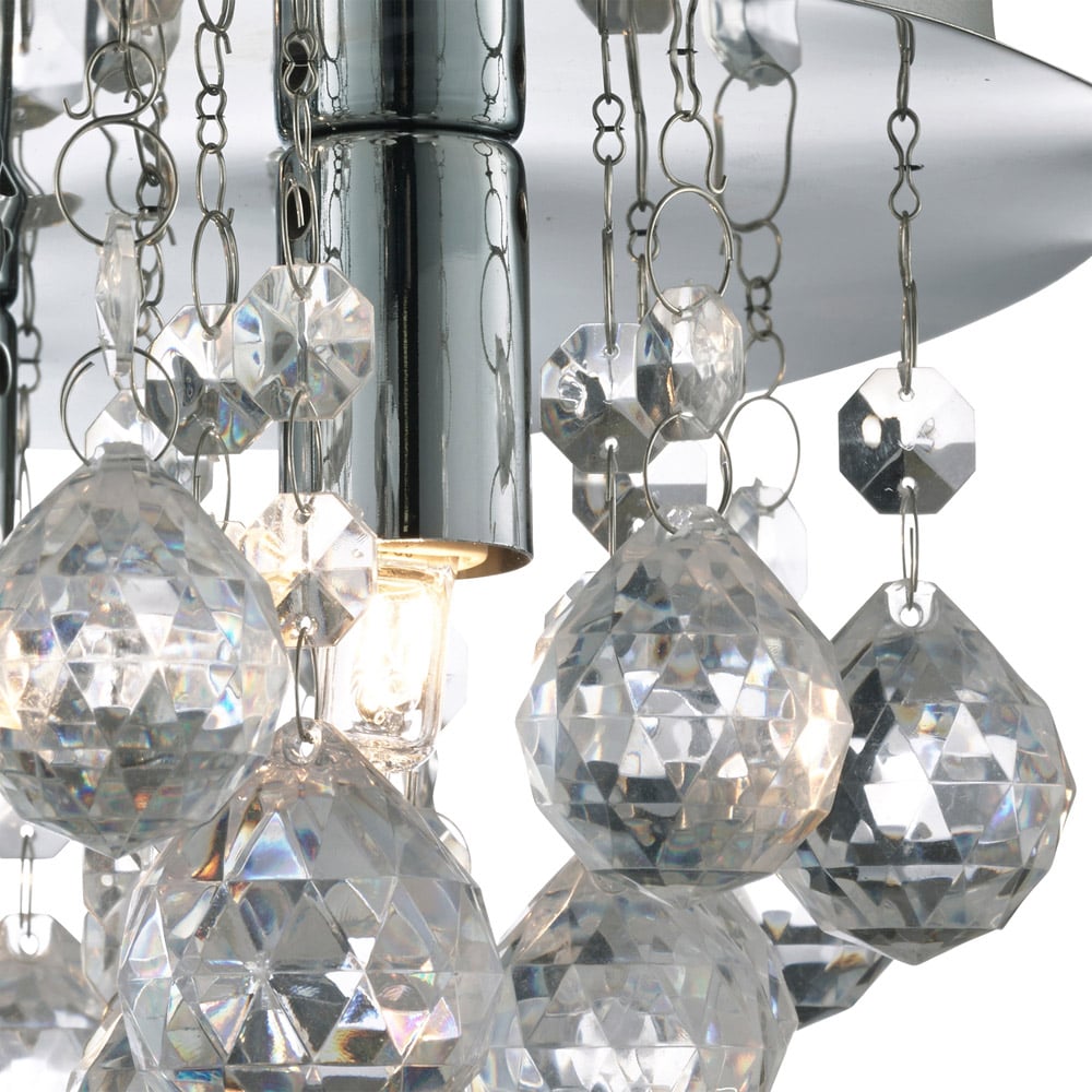 Elevate your interior with this chic ceiling flush fitting. Clear acrylic droplets cascade from a circular ceiling plate, creating a captivating interplay of light and shadow. Designed to accommodate three GLS LED bulbs, it delivers bright, even illumination while serving as a stylish focal point. Ideal for adding a touch of sophistication to living rooms, bedrooms, or hallways, its compact design ensures it won't overwhelm your space.