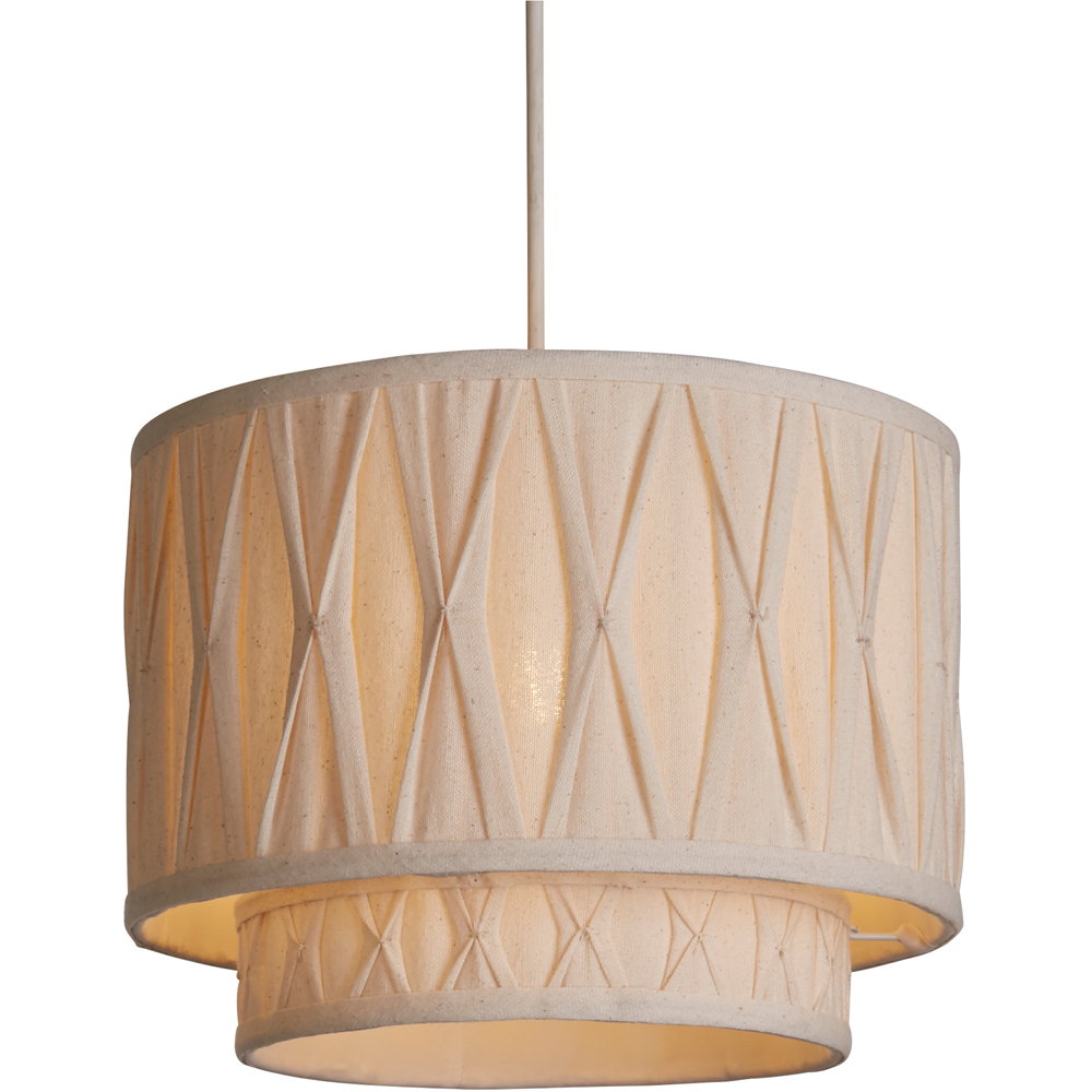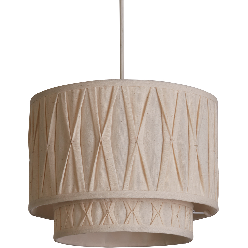 Enhance your home's ambiance with the Aurelia Cream Pinch Pleat Ceiling Shade. This shade's soft pleats offer a lovely textured look, complemented by a warm cream colour that creates a cosy and inviting atmosphere. Effortlessly update any lamp and enjoy a stylish, relaxed feel in any room. A simple yet timeless addition for your home.