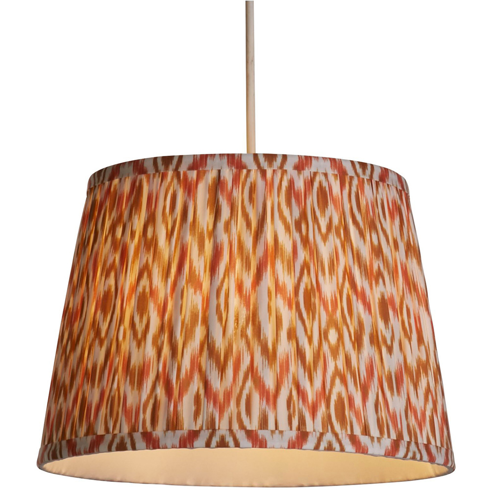 This Bronwyn Mushroom Pleat Shade adds instant charm and personality to any room. Its trendy ikat pattern creates a uniquely cosy atmosphere, perfect for adding a touch of character to your home. A warm white fabric lining ensures a soft, welcoming glow, and the reversible gimbal allows for easy adjustment and versatile placement.