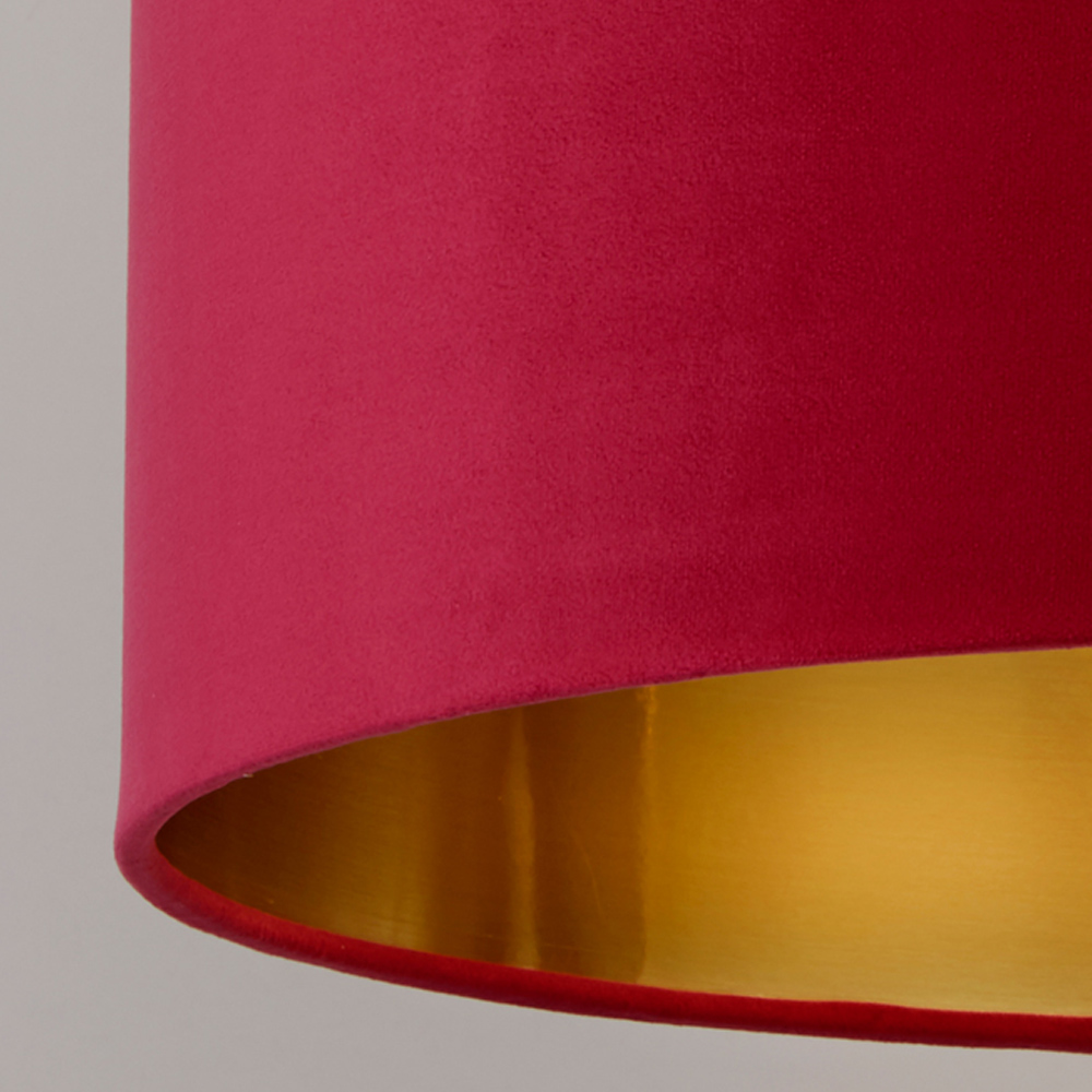 Transform your room with this opulent burgundy velvet lampshade. Its rich, deep colour adds instant warmth, while the gold inner lining casts a luxurious glow when illuminated. Measuring 28cm in diameter, it's the perfect size to make a statement without overwhelming your space. Compatible with B22, E14, and E27 fittings, integration with your existing lighting is effortless. This non-electric shade is easy to install, instantly upgrading the ambience of any room.