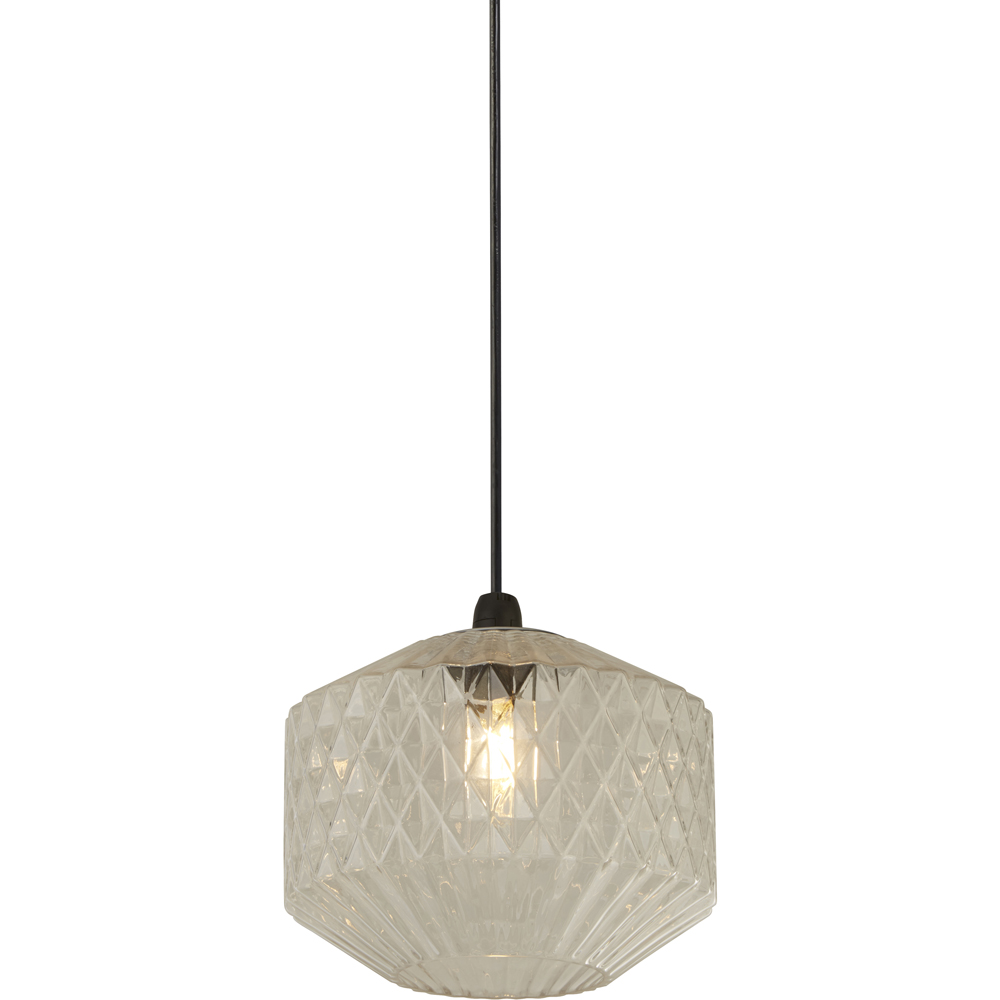 This elegant glass pendant shade effortlessly adds style and charm to any room. Its clean, geometric design is a captivating focal point, enhanced by the high-quality, polished glass. Compatible with B22, E14, and E27 bulbs, installation is quick and simple, allowing for easy adjustment to suit your space. The delicately carved grooves diffuse the light beautifully, creating a soft, welcoming ambience. Transform your home or office with this versatile and hassle-free lighting solution.