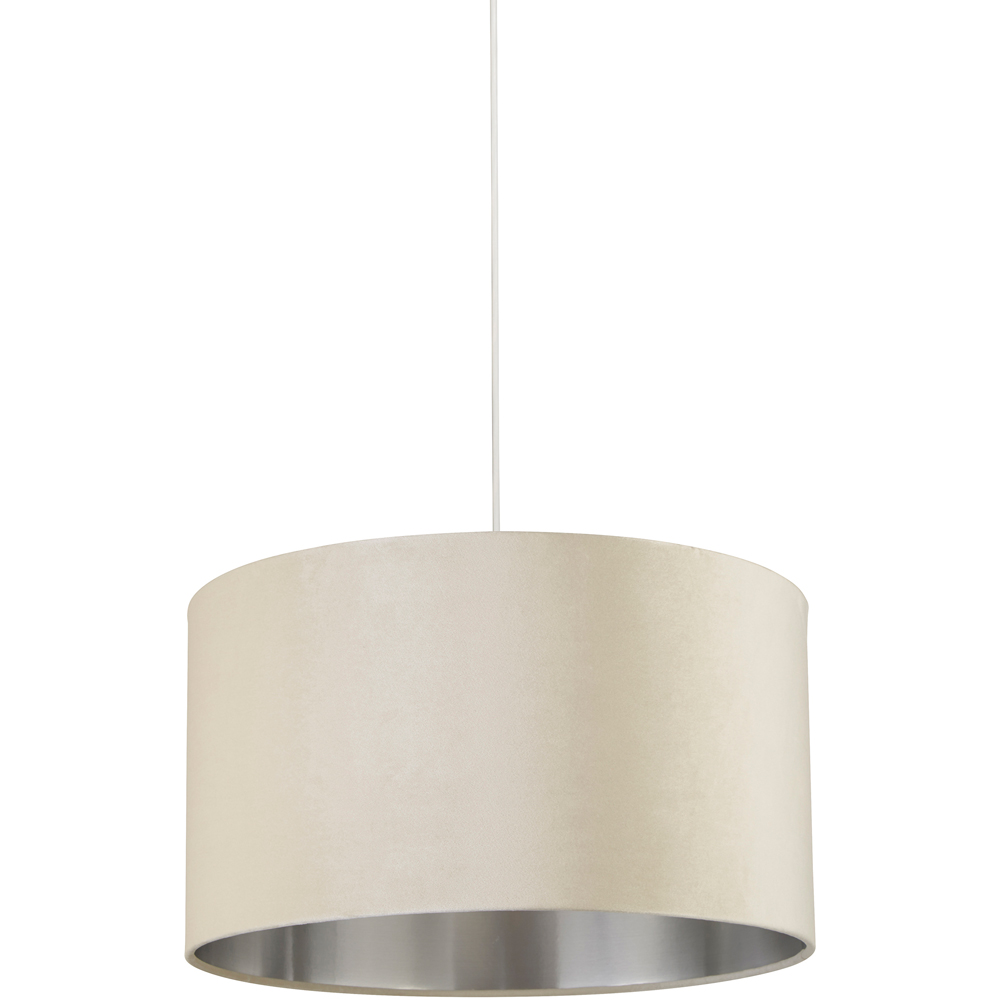 Transform your room with this elegant velvet drum shade. Its creamy exterior offers a soft, sophisticated touch, while the metallic silver lining casts a warm, inviting light. At a generous 50cm diameter, it makes a statement without overwhelming your space. Compatible with B22, E14, and E27 fittings, it's effortlessly paired with your preferred bulb. And as a non-electric shade, installation is quick and simple, adding a touch of understated luxury to any room.