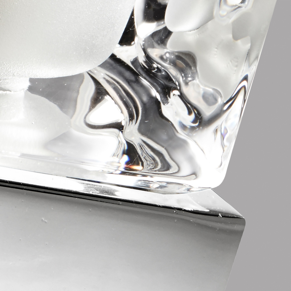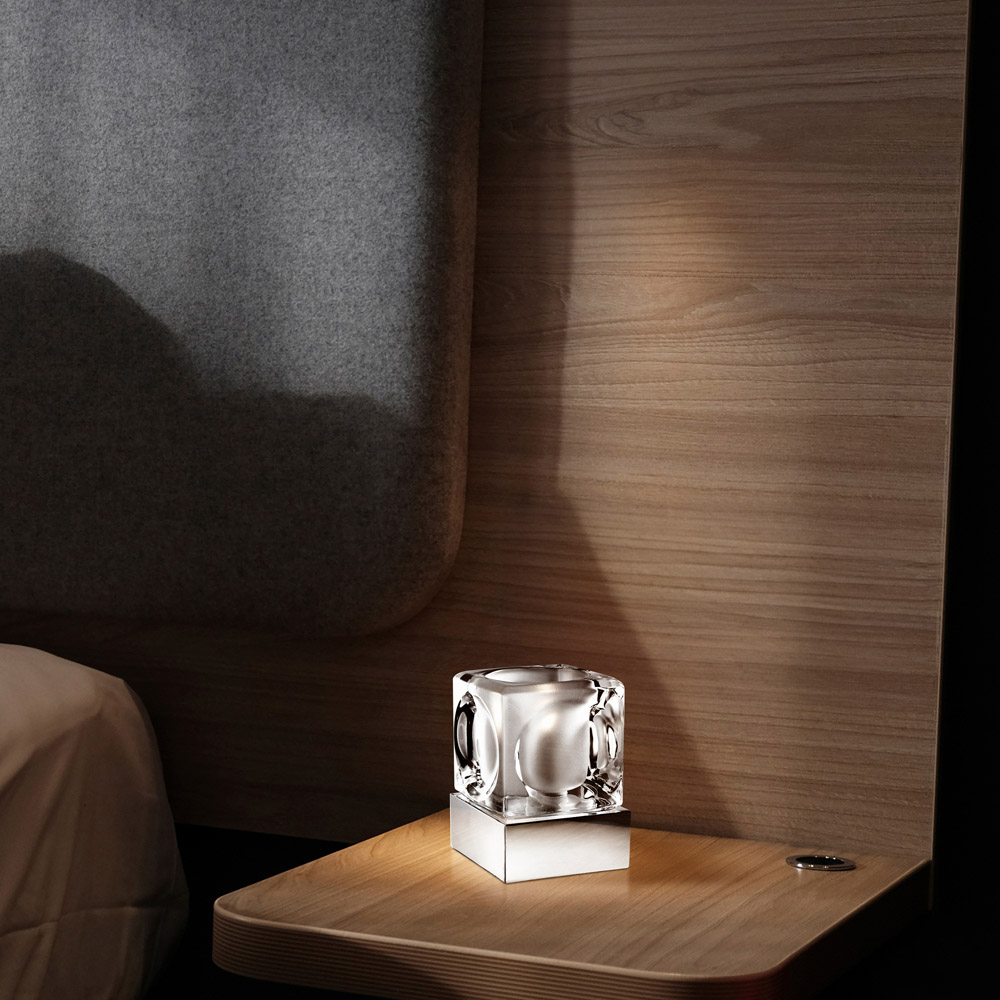 Illuminate your space with this stylish ice cube table lamp. Its clear outer and frosted inner create a soft, ambient glow, while the sleek chrome base lends a modern touch. Compact and versatile, it's ideal for bedside tables, desks, or any area needing a touch of extra light. Conveniently adjust the brightness with the touch dimmer situated at the base, perfectly tailoring the illumination to your mood. A practical and sophisticated addition to any home.