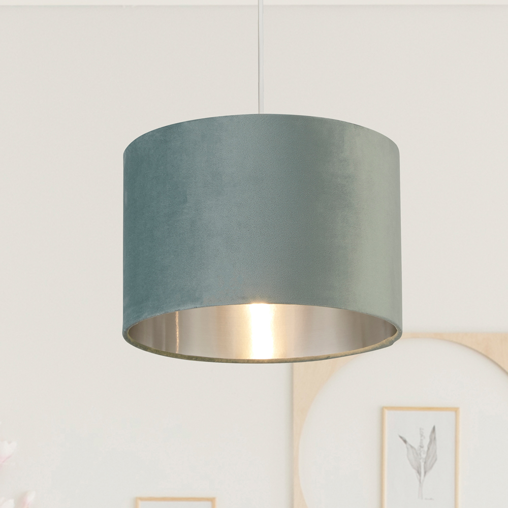Lighting Collection Sage Green Silver Inner Velvet Drum Shade