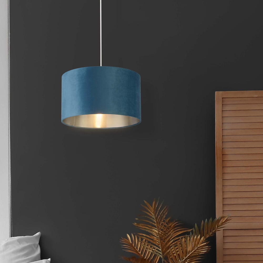 Lighting Collection Teal Silver Inner Velvet Drum Shade 35cm