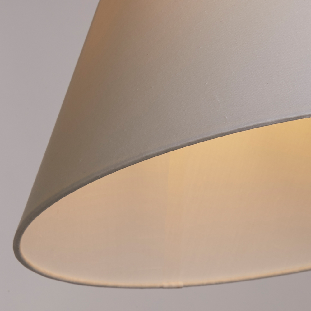 Enhance your home's ambiance with the 38cm Lighting Collection White Tapered Shade. This classic shade, expertly crafted from premium cotton with a coordinating cotton liner, gently diffuses light for a welcoming glow. The larger, tapered design adds sophistication to any room, and its versatile white hue complements both modern and traditional interiors.