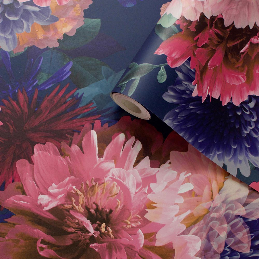 Add a touch of high-end fashion to your home with this Issy Blue wallpaper, showcasing a lavish floral design featuring large-scale peony and chrysanthemum blossoms. The beautiful tones create a sophisticated ambiance perfect for bedrooms, living rooms, and dining rooms. Its easy-to-hang design makes decorating a breeze, adding a flowery touch to your walls.