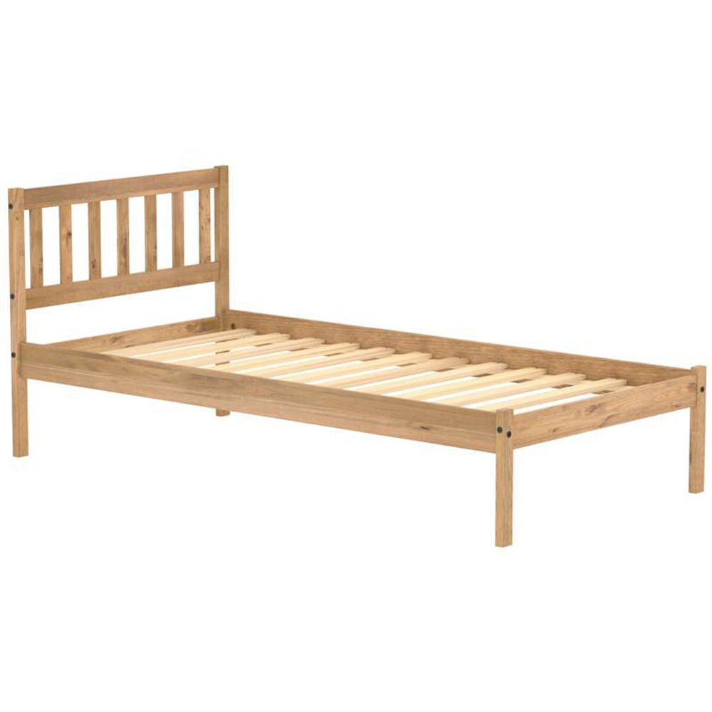 Upgrade your bedroom with the Lisbon single bed. This classic pine bed frame boasts a waxed finish for a charming rustic look. Its solid slatted base provides firm mattress support and excellent airflow. Designed to fit a standard UK single mattress only. A simple yet stylish choice for any bedroom.