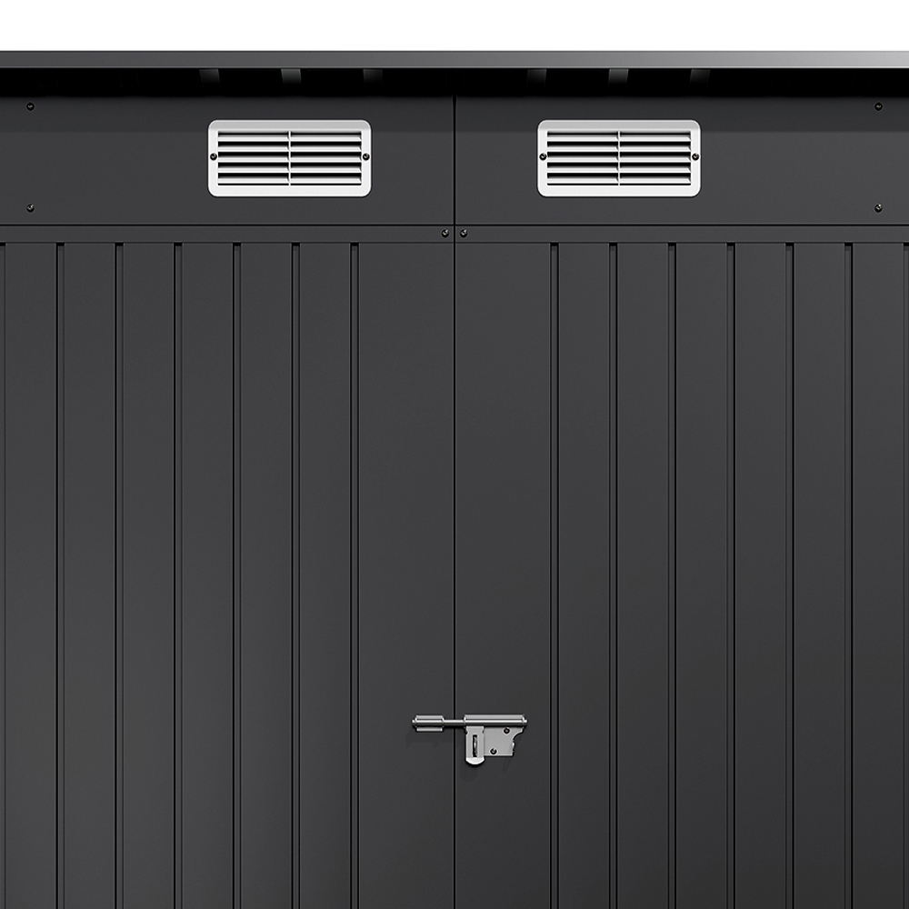 Elevate your outdoor organisation with the Living and Home 7.6 x 3.7ft 2 Door Outdoor Galvanised Steel Storage Shed in Anthracite. This shed presents an excellent solution for tidy storage of garden tools and outdoor supplies. Crafted from high-quality galvanised sheets, it is both strong and durable, making it ideal for outdoor conditions. Featuring rust-resistant materials, it also requires no maintenance, ensuring a worry-free experience. With two vents for proper air circulation, it keeps the interior fresh and prevents stuffiness during warm days. Assembly is straightforward, and for peace of mind, wearing protective gloves is advised. Dual lockable doors provide secure storage for all your tools and supplies, while the sloped roof design guarantees effective water drainage.