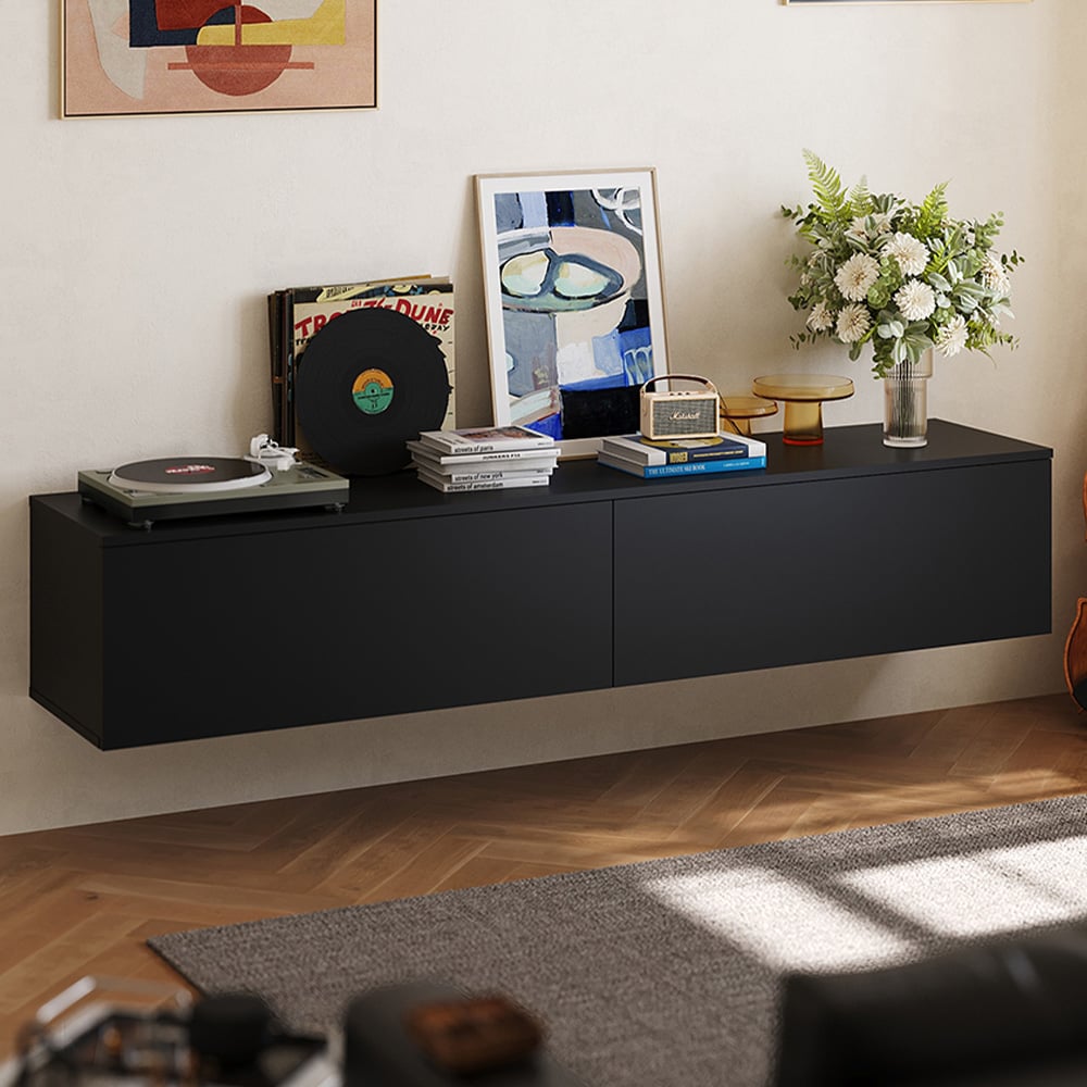 Living and Home 2 Drawer Black Wall Mounted Floating TV Cabinet