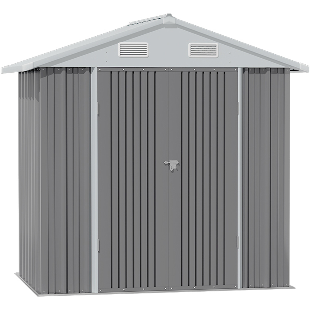 Experience seamless organisation with the Living and Home 6 x 4ft Outdoor Metal Storage Shed equipped with 2 Lockable Doors. This sturdy metal shed is a fantastic choice for anyone looking to declutter their backyard. Made from high-quality galvanised steel featuring an anti-rust finish, it's built to last and requires very little maintenance. Designed to endure all weather conditions, it provides reliable protection for your outdoor gear. With sufficient space for a push lawn mower and more, it excels at keeping your items safe from UV rays, wind, and rain. Furthermore, ventilation louvres enhance air circulation, while the sloped roof design allows rain and snow to run off effortlessly.