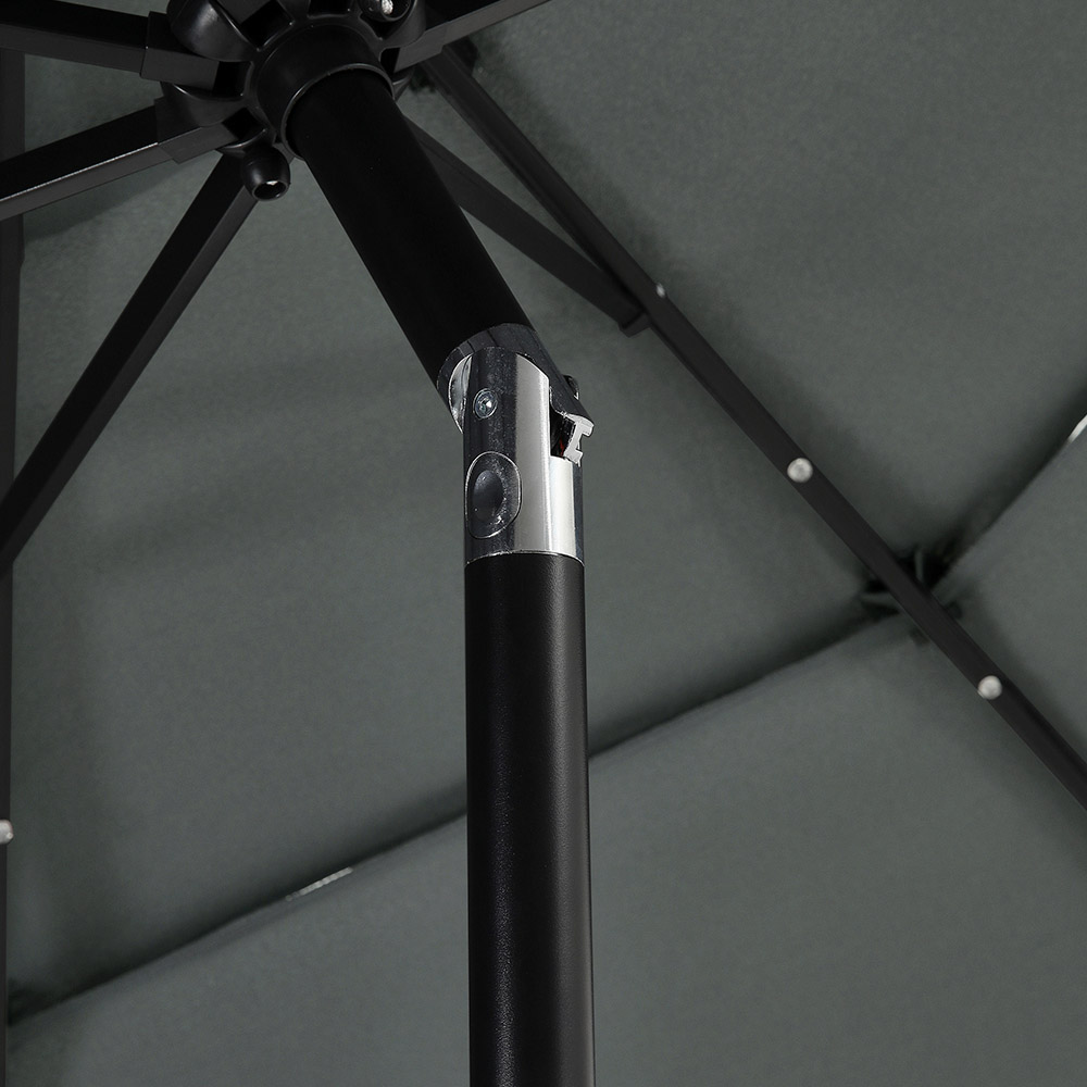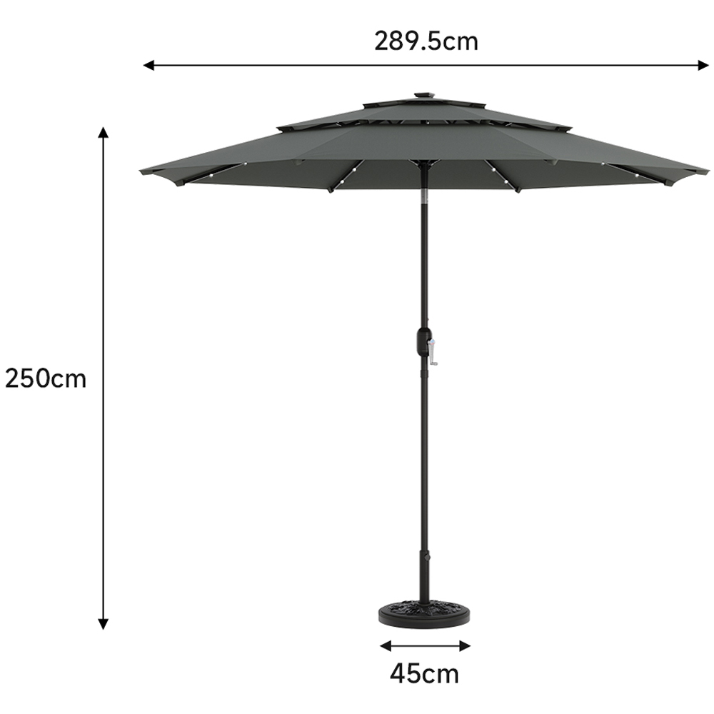 Craft your perfect outdoor retreat with this three-tier umbrella, a must-have for both relaxation and productivity in the open air. Engineered with a robust multi-layer build and durable, weather-resistant fabrics, this umbrella delivers dependable shelter, whether under a blazing sun or a gentle drizzle. Thanks to its user-friendly push-button tilt and crank system, adjusting the angle and height is effortless, guaranteeing your outdoor experiences are always comfortable and stylish. What's more, this set includes a base that is both attractive and provides great support.