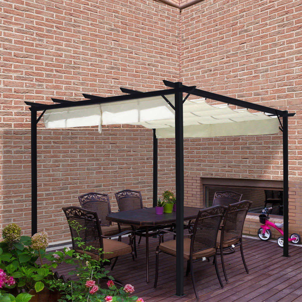 Turn your garden into a cosy and cool oasis with this Beige Square Metal Pergola Gazebo with Canopy. Crafted from sturdy steel, it features a thick polyester canopy to offer you a functional shelter. It's coated with PA to block harmful UV rays and keep you shaded on those hot summer days. With a classic and elegant look, this pergola gazebo can complement any outdoor space.