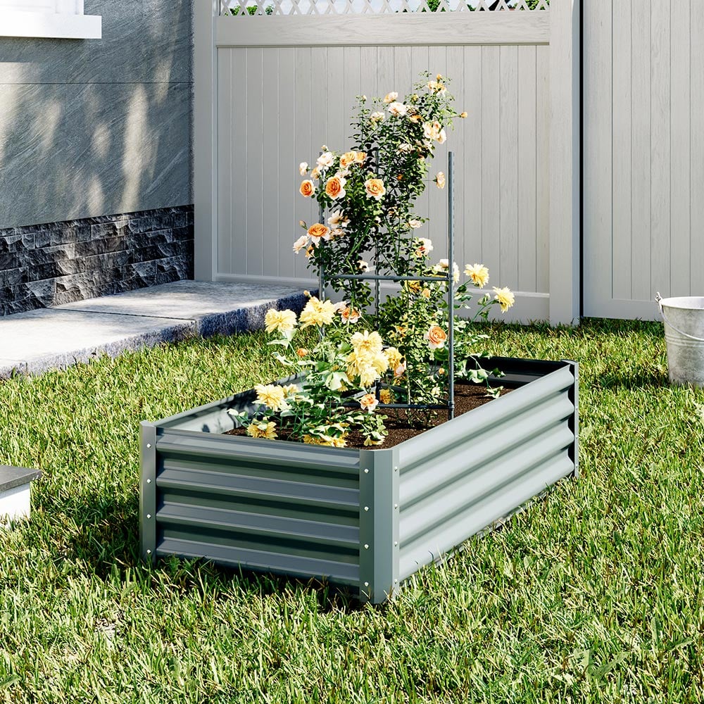 Living and Home 3.9 x 1.9ft Grey Galvanised Steel Raised Garden Bed