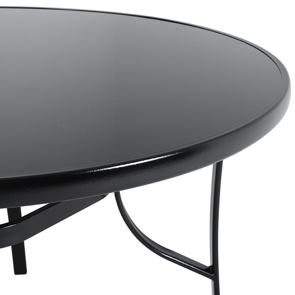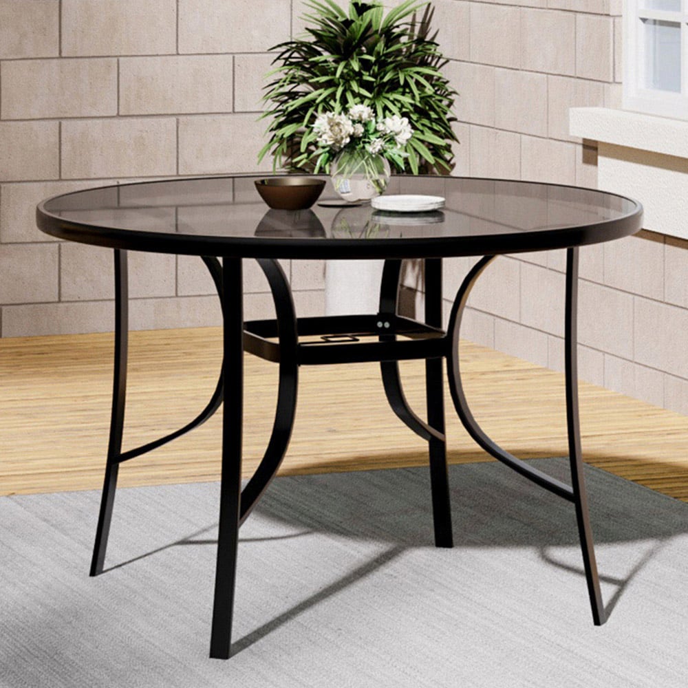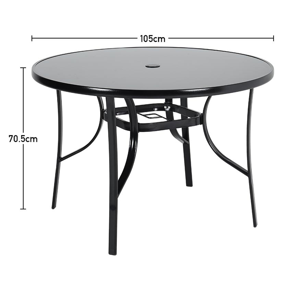 Add a touch of romance to your outdoor gatherings with the Living and Home 4 Seater Round Garden Glass Table featuring a parasol hole. Inspired by traditional wrought-iron furniture, this stylish table enhances any garden or terrace with its classic black design. Built for durability, this table features a well-crafted surface, ensuring long-lasting use in all weather conditions, perfect for both sunny days and drizzly afternoons.