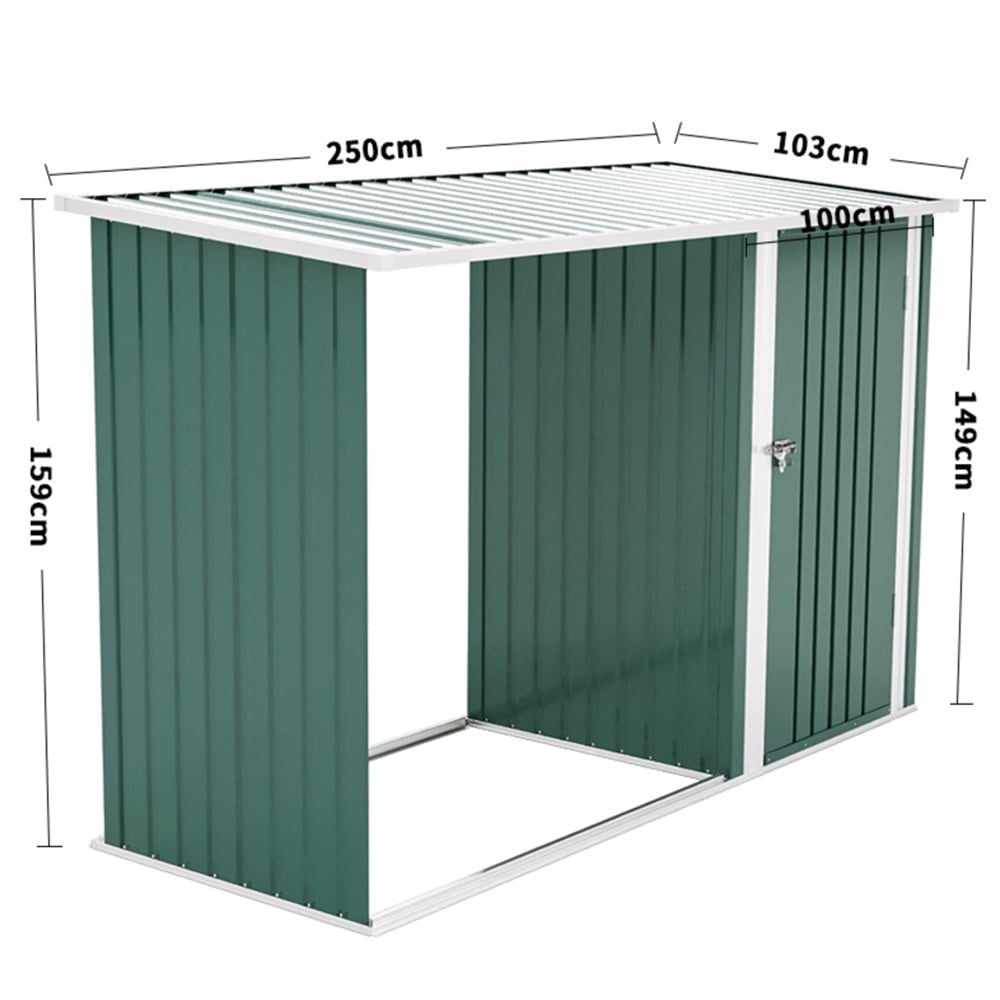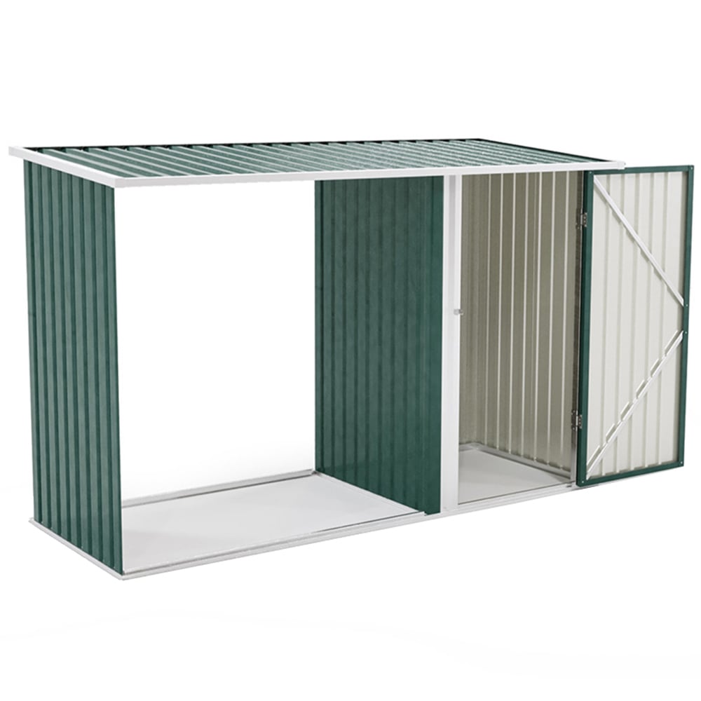 Living and Home 5.2 x 8.2ft Green Steel Garden Storage Shed with Log Rack