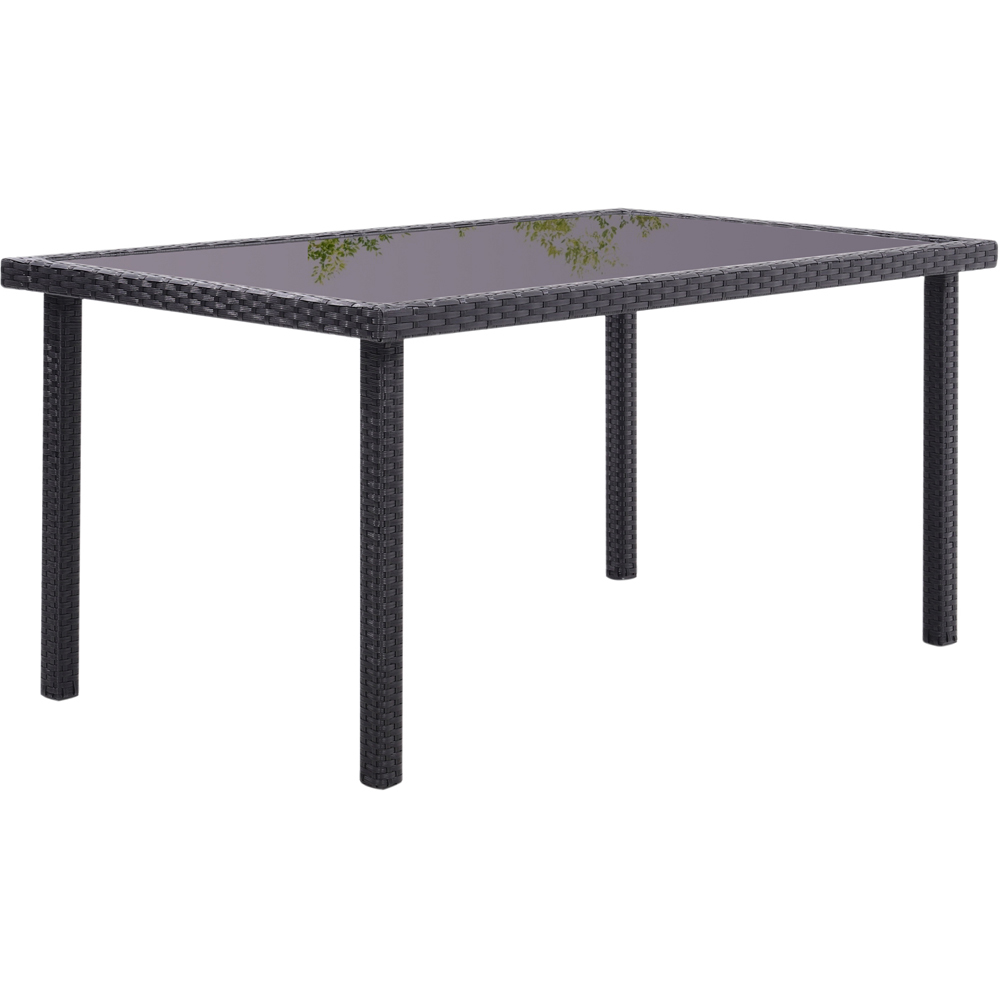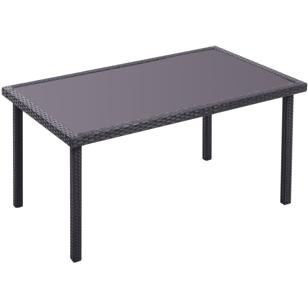 Enjoy a nice dinner with family and friends at this Living and Home Rectangle Rattan Table in brown. Suitable to accommodate six people, it is made of durable metal and strong tempered glass to add a rural pastoral style. With its clean lines and never-obsolete look, the table will accompany you through your pleasant outdoor time. Crafted with high-quality materials, the table is designed to stand up to all weather conditions. The hand-woven plastic rattan looks like natural rattan but is more durable for outdoor use. Featuring a stylish design in a neutral black colour, it's suitable to complement most backyard or home decoration styles. Dimensions: 74 x 90 x 150cm.