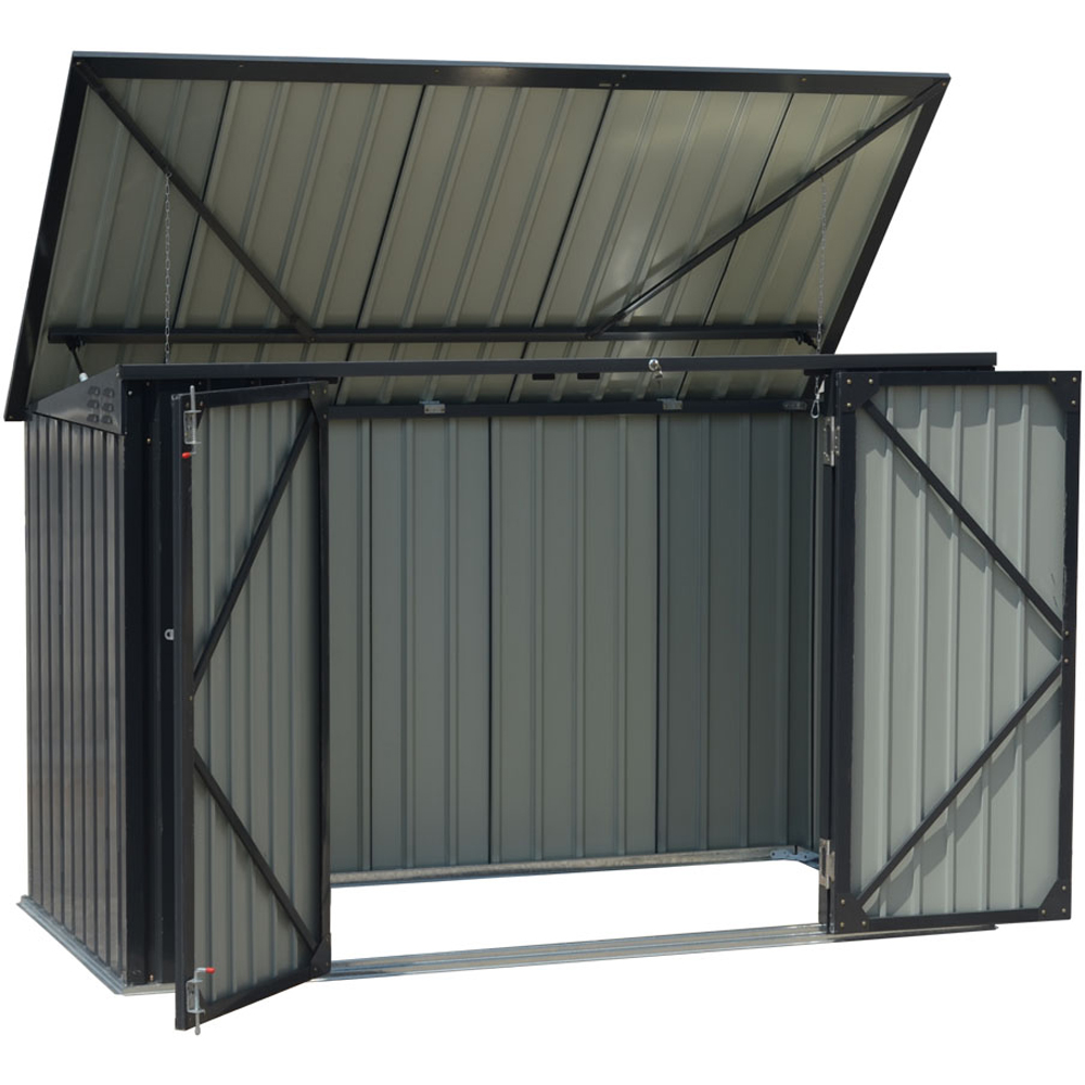 Living and Home 6.2 x 3.7ft Anthracite Zinc Steel Wheelie Bin Outdoor Storage Shed