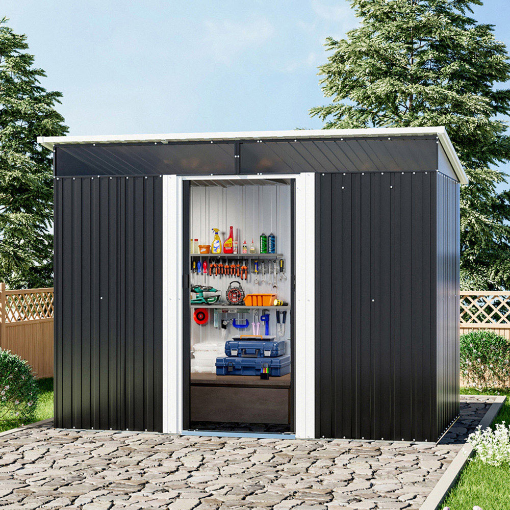 Living and Home 6 x 8.5ft Black Metal Garden Storage Shed with Lockable Sliding Doors
