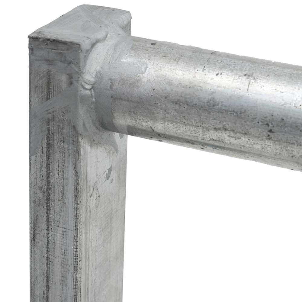 Safeguard your field with the Living and Home 7 Bar Half Mesh Galvanised Metal Multipurpose Field Gate 8ft. This sturdy gate can be used for farms and fields as a pedestrian access or as a livestock access gate, it can also be used as well as a rural gateway. It is crafted using hot-dipped galvanised metal, which makes it rust and corrosion-resistant. It features gate eyes and a spring-loaded bolt latch for easy accessibility and safety purposes. This gate is an ideal and durable solution that will keep your outdoor area secure while providing a protective barrier against trespassers. Please note the 2 packages may arrive in separate deliveries – check you have all parts before starting.