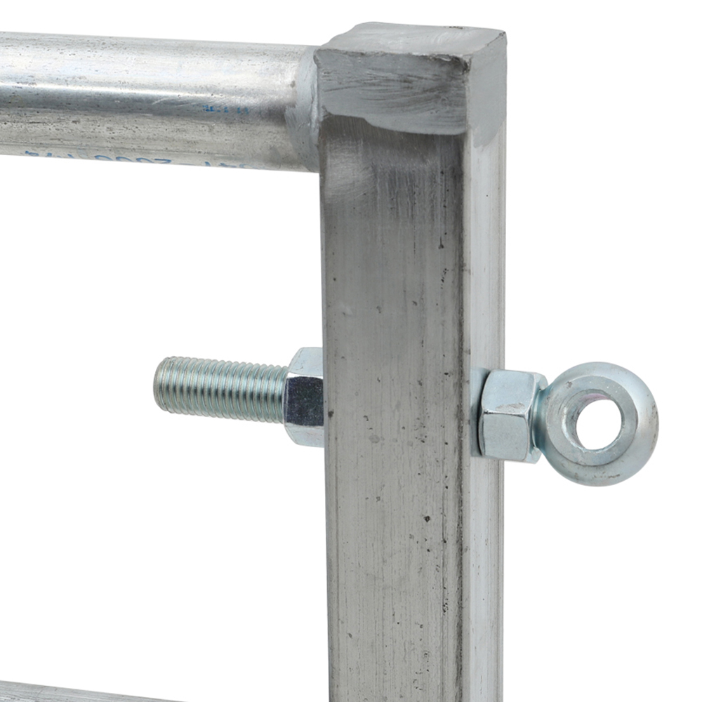 Safeguard your field with the Living and Home 7 Bar Half Mesh Galvanised Metal Multipurpose Field Gate 9ft. This sturdy gate can be used for farms and fields as a pedestrian access or as a livestock access gate, it can also be used as well as a rural gateway. It is crafted using hot-dipped galvanised metal, which makes it rust and corrosion-resistant. It features gate eyes and a spring-loaded bolt latch for easy accessibility and safety purposes. This gate is an ideal and durable solution that will keep your outdoor area secure while providing a protective barrier against trespassers. Please note the 2 packages may arrive in separate deliveries – check you have all parts before starting.