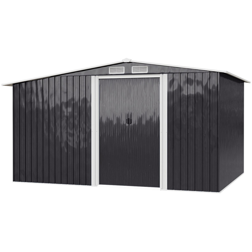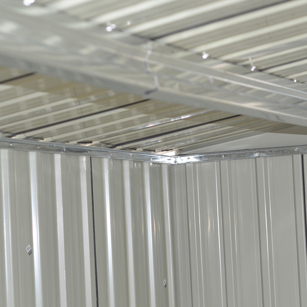Keep your garden tools neatly organised with this 8ft x 8ft metal garden shed, perfect for storing a wide variety of equipment and furniture. Its robust steel construction ensures lasting durability and reliability. The generous storage space is complemented by convenient log storage and ventilation shutters to maintain airflow and prevent musty odours. A practical and sturdy solution for any garden.