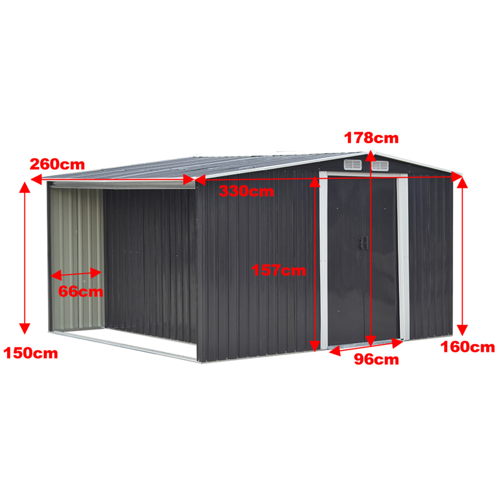 Living and Home 8 x 8ft Metal Garden Shed with Log Storage