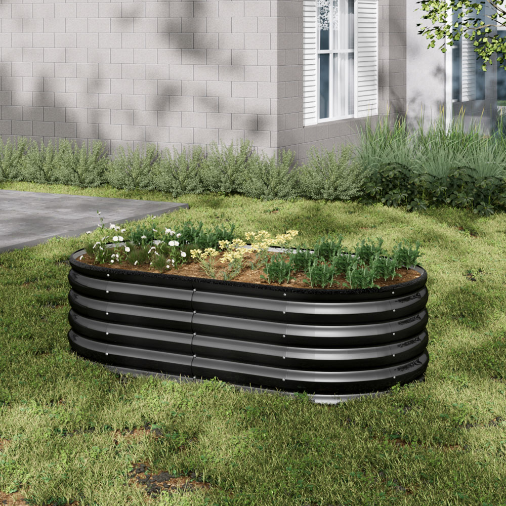 Living and Home Anthracite Oval Galvanised Steel Raised Garden Bed 160 x 42cm