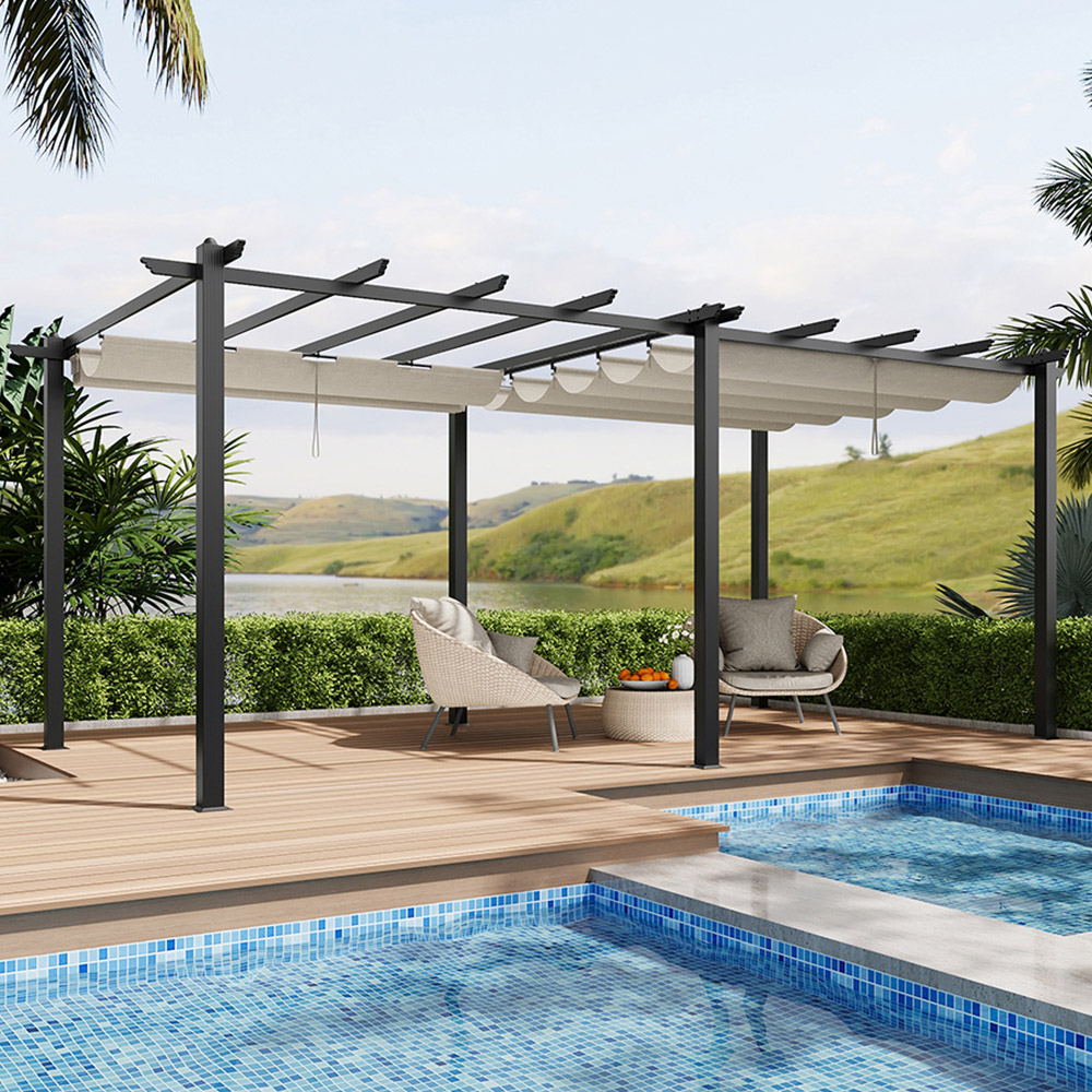 Living and Home Beige White Aluminium Pergola with Retractable Roof 6 x 3m
