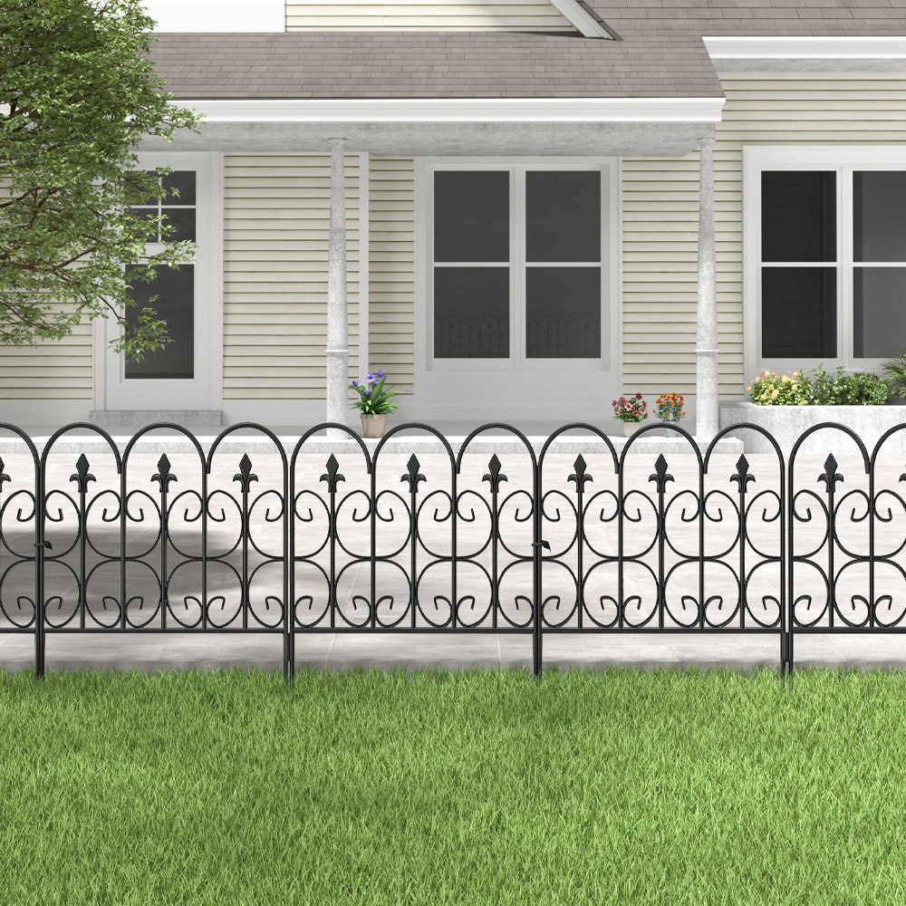 Enhance your garden',s aesthetic with this elegant iron garden edging fence. Its smooth, arched ironwork design offers a striking visual appeal while providing practical garden boundary definition. This charming fence safeguards your plants and flowers from both children and animals, functioning equally well as an animal barrier, vegetable fence, or roadside protection. A stylish and functional addition to any outdoor setting.