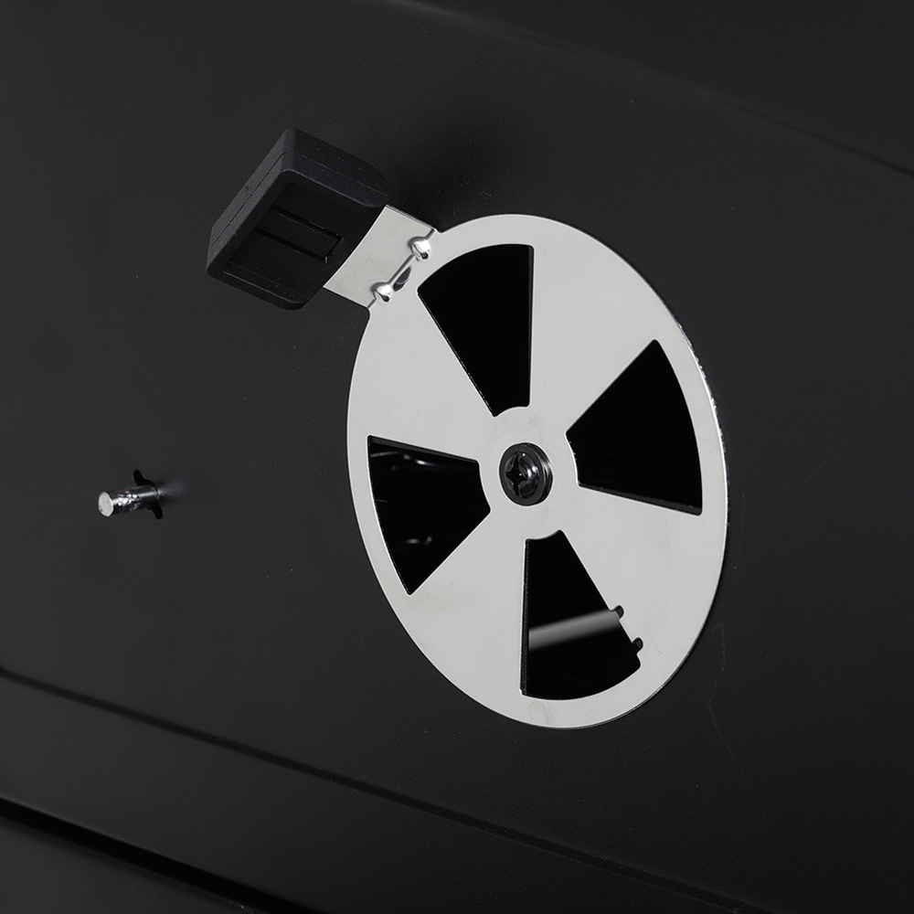 Turn your backyard into a grilling haven with the Living and Home Black BBQ Grill. Built to last, this grill boasts a sleek and sturdy steel frame featuring two layers of stainless steel cooking grates that are easy to clean. Use your grill with ease thanks to the spring handle that provides convenient access to the firebox, remaining cool to the touch for effortless charcoal addition. It features a large grilling surface, which is complemented by two spacious side tables for prepping and serving. You add charcoal easily using the built-in fuel window, and use the pull-out ashtray for easy cleanup. Designed with four adjustable vents, it provides excellent airflow for even heat distribution and full combustion. Complete with a built-in thermometer, it also helps in precisely measuring temperature control for perfect results every time.