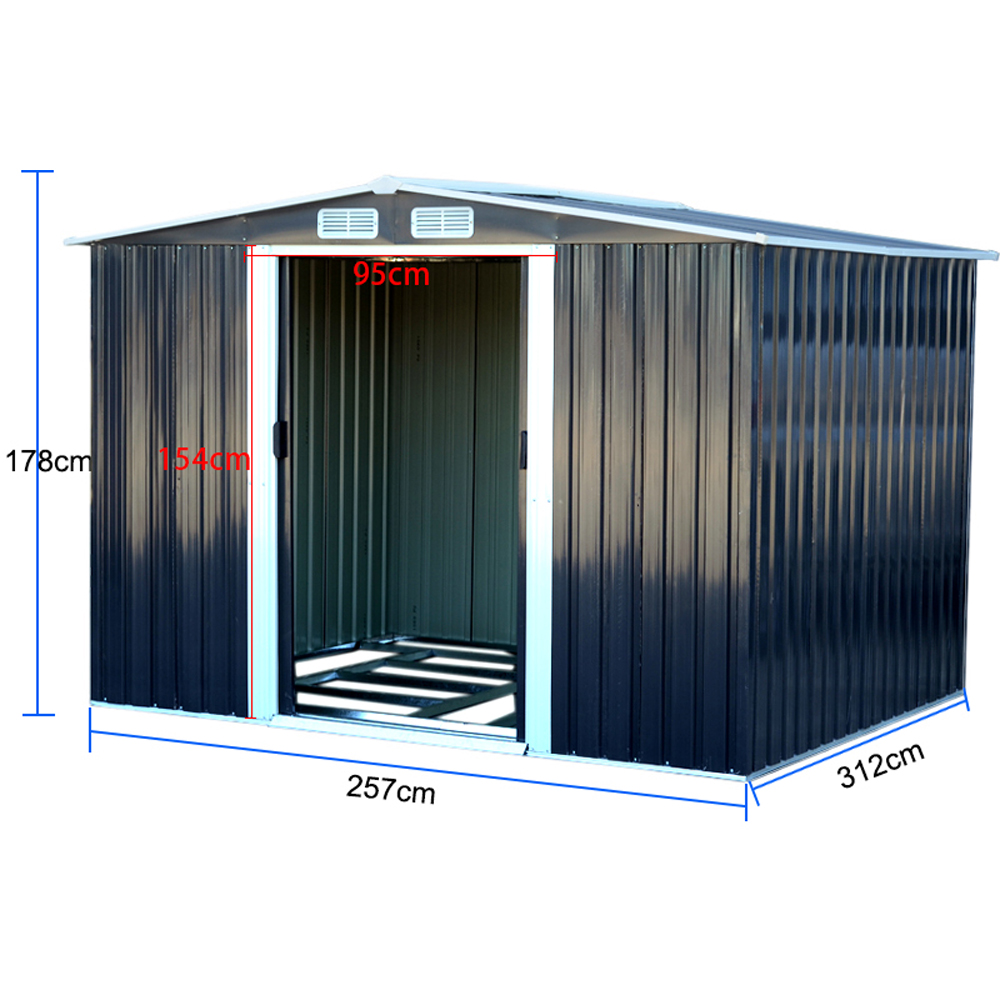 Living and Home Black Metal Garden Shed with Foundation 8.4 x 10.2ft
