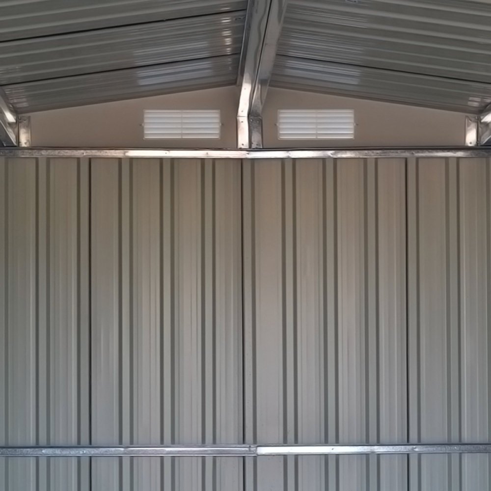 This black metal garden shed, measuring 257 x 312cm, is crafted from high-quality metal and offers a durable and secure storage solution for your outdoor essentials. Built with a strong steel frame, this shed provides ample space for your tools and equipment whilst withstanding heavy use. The rust-free and rot-resistant design ensures maintenance-free ownership, and the sleek, understated appearance complements any garden aesthetic without dominating the space. Offering robust performance in a simple design, this garden shed is an ideal addition to any outdoor area.