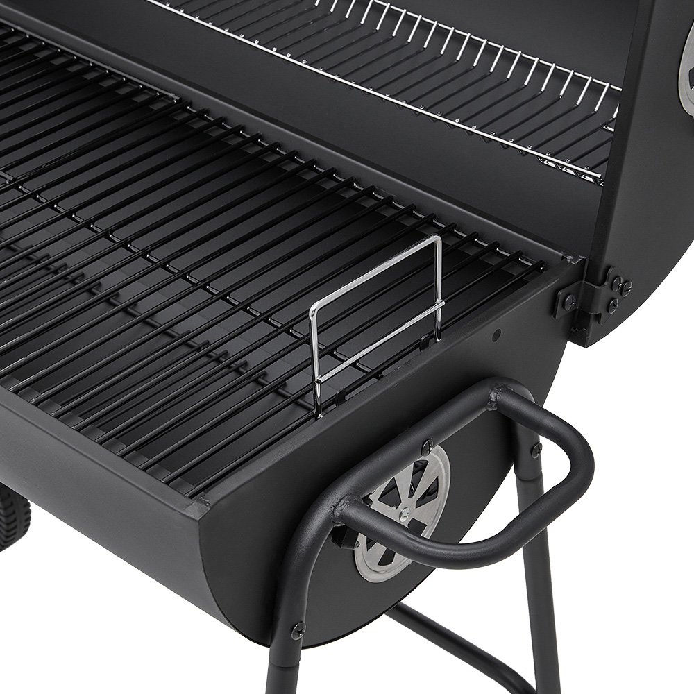 Elevate your outdoor cooking with this black outdoor garden charcoal grill. This robust and stylish grill is perfect for garden parties, boasting a large grilling surface and convenient handles for easy manoeuvrability. Crafted from premium carbon steel, it offers exceptional durability and reliable performance, season after season. Simple to clean, this grill ensures effortless post-BBQ tidying. A built-in thermometer provides precise temperature control for perfectly cooked food every time. Enjoy years of dependable grilling pleasure.