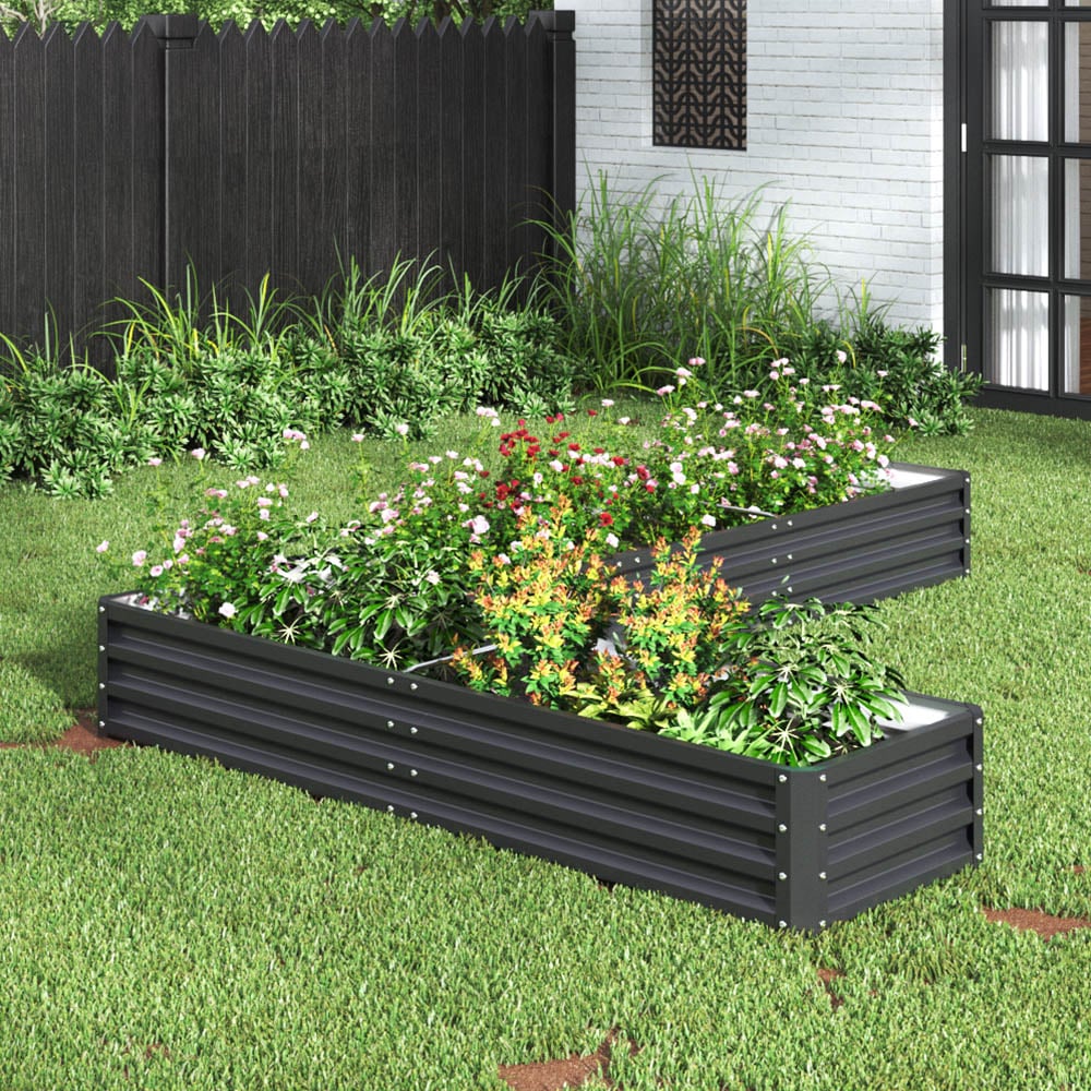 Living and Home Charcoal Black L Shaped Galvanised Steel Raised Garden Bed 30 x 277 x 207cm
