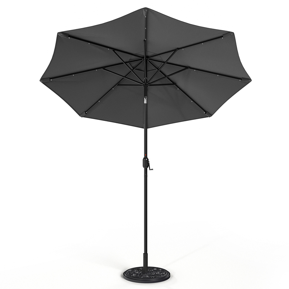 Living and Home Dark Grey 24 LED Crank Lift Garden Parasol with Floral Pattern Base 3m