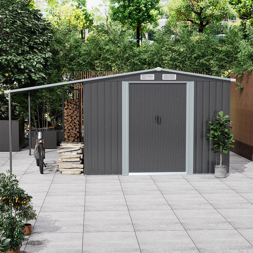 This spacious lean-to metal storage shed, in a stylish dark grey finish, offers a practical solution for storing all your larger outdoor equipment and tools. Crafted from anti-corrosion galvanised steel, it',s built to withstand the elements and requires minimal upkeep, guaranteeing years of reliable service. Sliding doors provide easy access to your contents, promoting efficient organisation. Available in a range of sizes to suit your garden perfectly.
