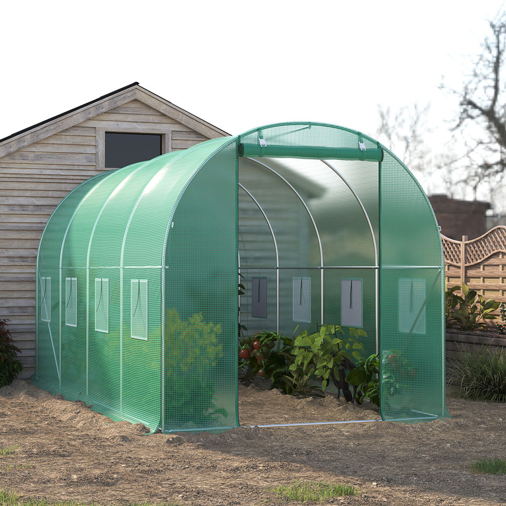 Outsunny Green Steel 10 x 13ft Walk In Polytunnel Greenhouse