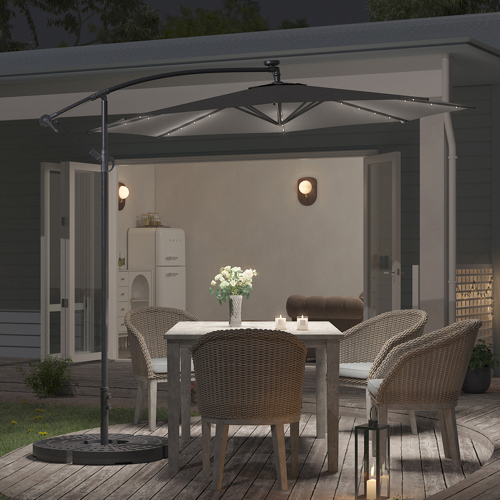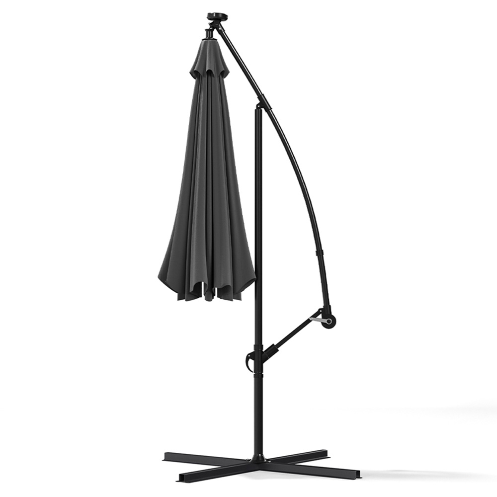 Make a comfortable and stylish add-on to your outdoor space with this 3m Dark Grey Cantilever Parasol. With this lovely parasol, you can enjoy a comfortable time in your garden. Sturdy and safe, the shade is waterproof and UV-resistant, and it not only provides shelter for you when it rains but also keeps you cool under the hot sun. Featuring high-quality 180g polyester fabrics with top vents and an optional base, this parasol makes a perfect addition to your garden areas. Easy to use, simply lift the slider to extend your parasol outward. Also, with a 3-metre diameter, this hanging garden parasol effortlessly hangs over your dining set or garden setting. Apart from this, it perfectly complements your rattan furniture or outdoor dining table. For added convenience, it includes a crank winding mechanism to open and close the parasol without hassle. Additionally, the inclination angle of the umbrella is adjustable for maximum ease. Material: 8 ribs, 48/42mm metal pole, 180g polyester fabric cover. Pole: 48 x 1mm. Size: 3 x 2.6m. Looking for a way to keep your parasol secure and protected and enjoy some shade? Check out our selection of parasol bases, designed to keep your parasol in place while you relax, and parasol covers to keep them protected.