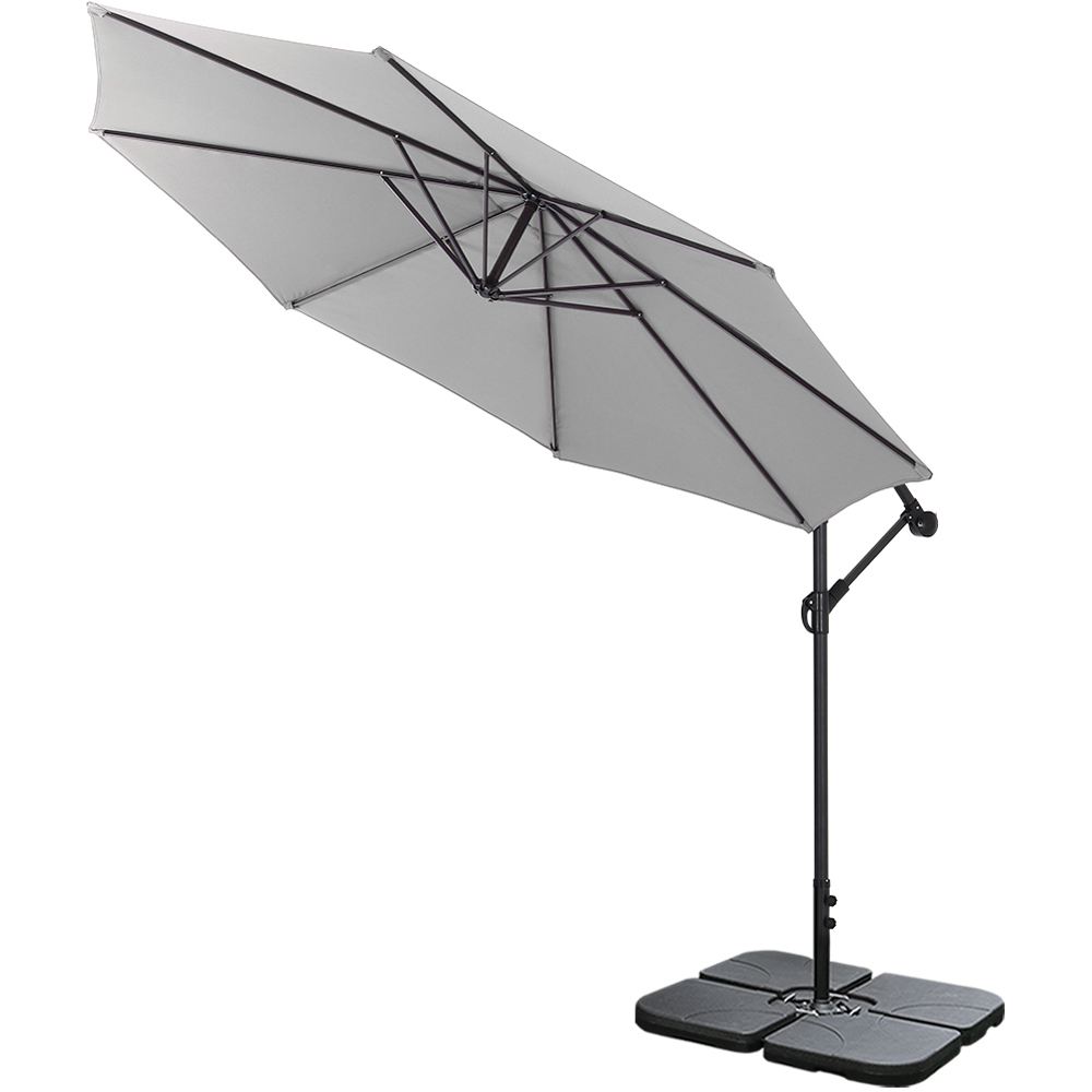 Bring elegance and comfort to your outdoor areas with the 3m Light Grey Cantilever Parasol with Square Base. Offering both style and protection, this attractive parasol is crafted from high-quality materials and is designed to withstand the elements. The waterproof and UV-resistant shade ensures you stay sheltered from rain and sun alike. Featuring durable 180g polyester fabric and top vents, this parasol easily extends with a simple lift of the slider, creating a perfect canopy over your dining set or garden nook. Its convenient crank mechanism allows for effortless opening and closing, while the adjustable inclination provides flexibility for optimal shade.