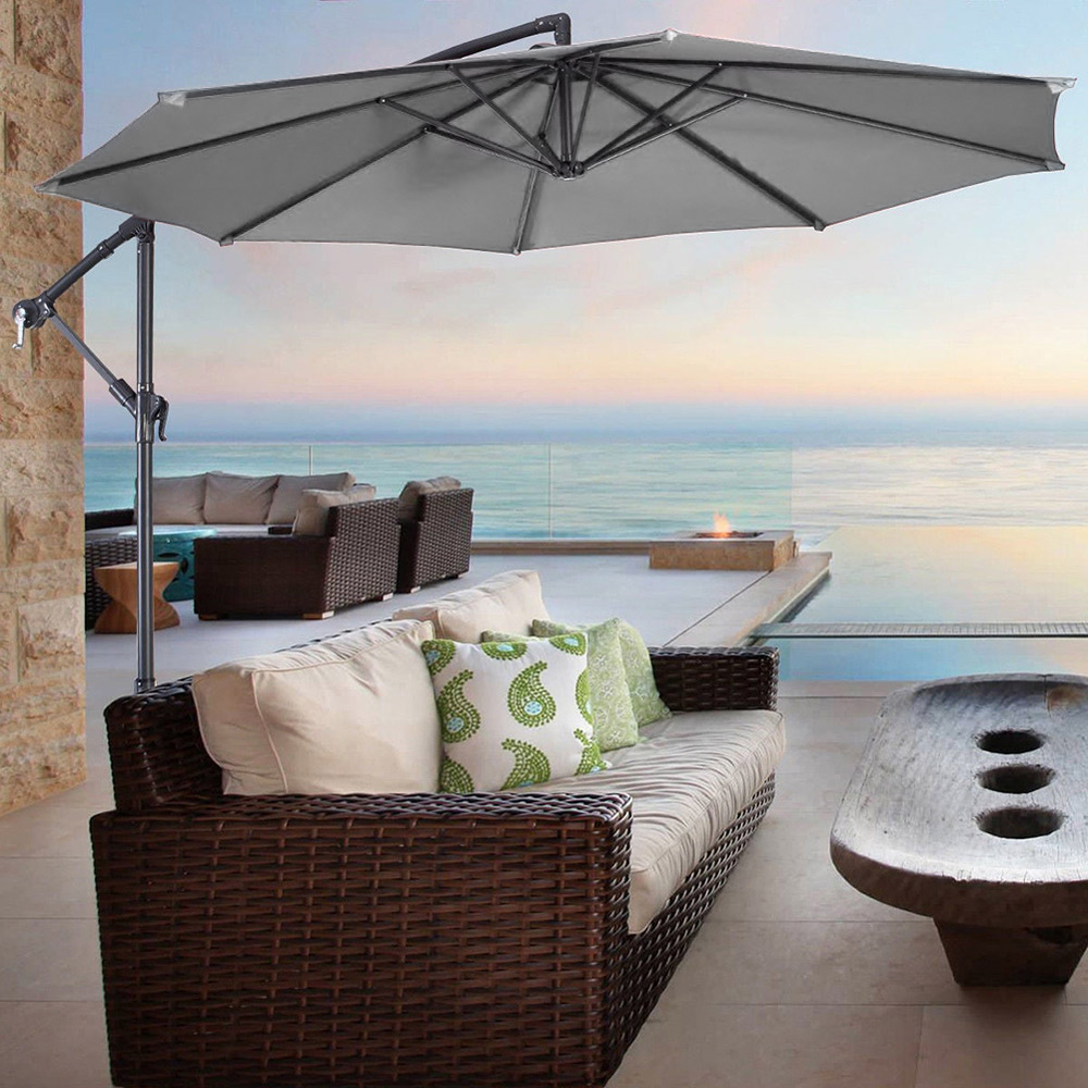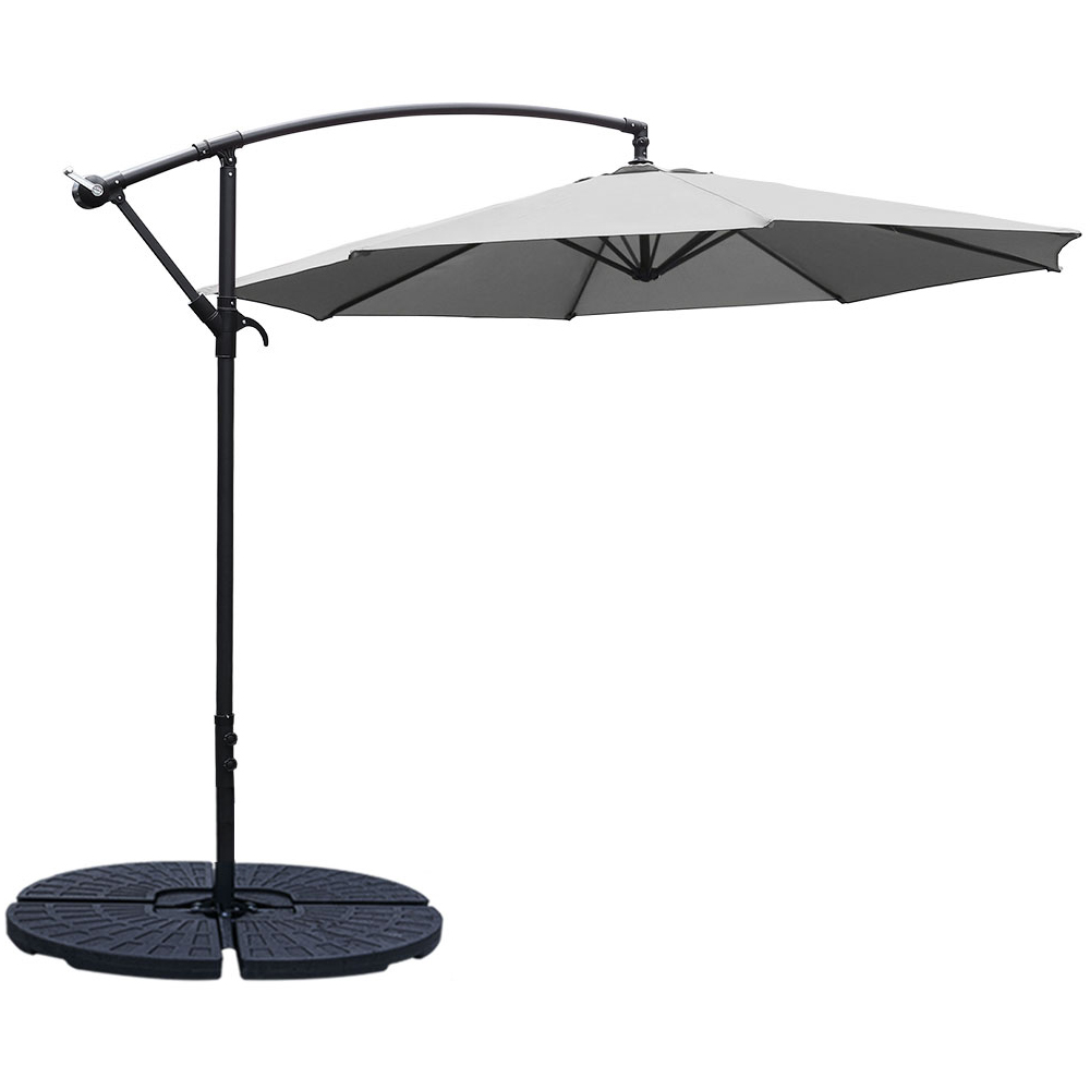 Elevate your outdoor environment with the chic and practical 3m Light Grey Garden Cantilever Parasol, complete with a sturdy round base. This exquisite addition not only enhances the aesthetics of your garden but also ensures your comfort, providing a perfect retreat from both sun and rain. Crafted from high-quality 180g polyester, the canopy is both waterproof and UV-resistant, allowing you to bask in the shade regardless of the weather.