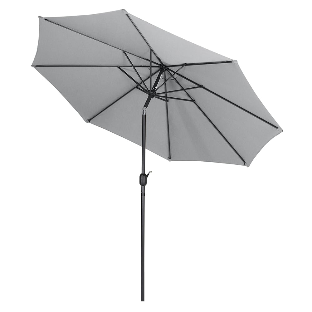 Enjoy your outdoors during those warm, sunny days with Livingandhome 3m Light Grey Round Crank Tilt Parasol with Rattan Effect Round Base. This wide, water-resistant canopy comes with a crank mechanism for added convenience. It shields you and your fellow diners from damaging UV rays in the height of the summer. With high-quality 180G polyester fabrics and top vents - this parasol has a great function of UV protection and water repellant. It also comes with a tilt system for flexibly adjusting the umbrella to block the sunlight in different positions (Tilt 30 degrees vertically, cannot rotate horizontally). It is perfect as a beach umbrella, sun tent, rain shelter and more. Specifications: Material: Aluminium metal pole, 180g/m2 Polyester fabric cover. Steel rib quantity: 8. Aluminium pole diameter: 38mm. Looking for a way to keep your parasol secure and protected and enjoy some shade? Check out our selection of