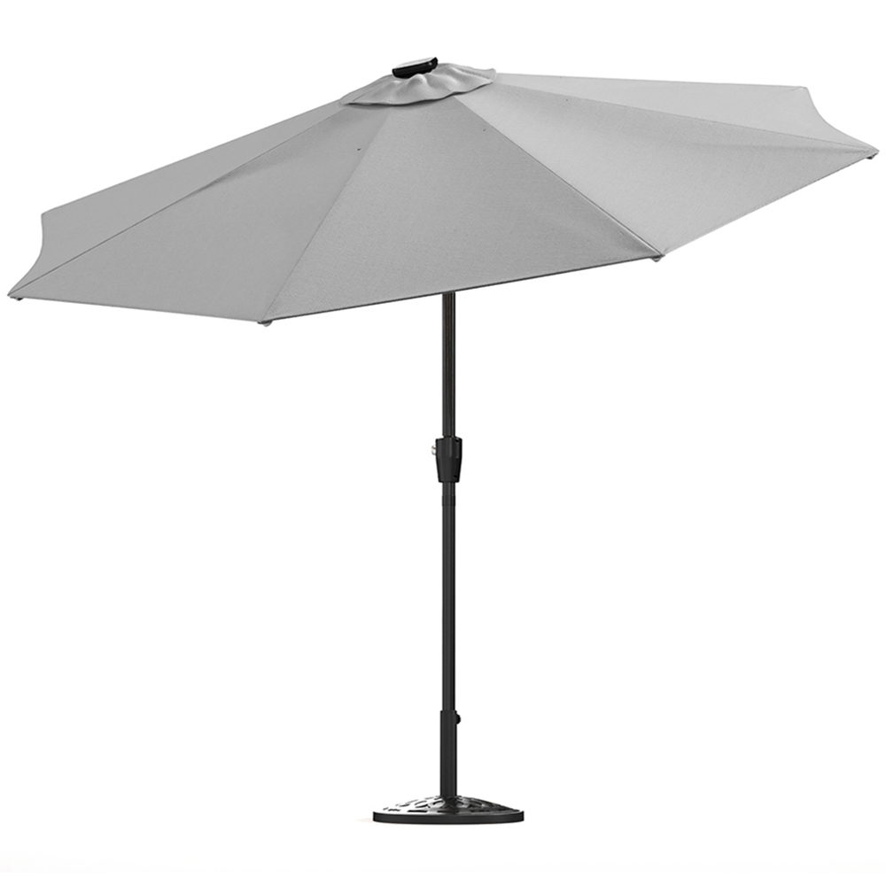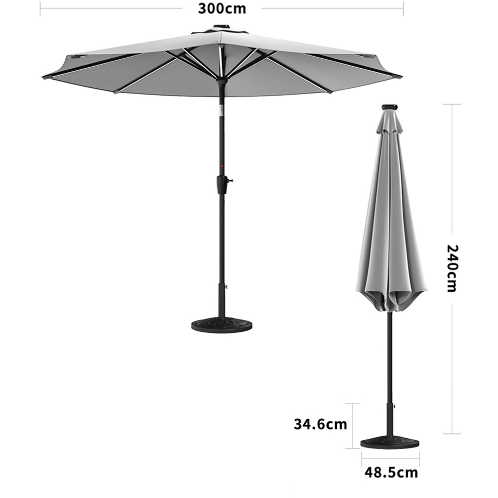 Living and Home Light Grey Solar LED Patio Umbrella with Resin Floral Base 3m