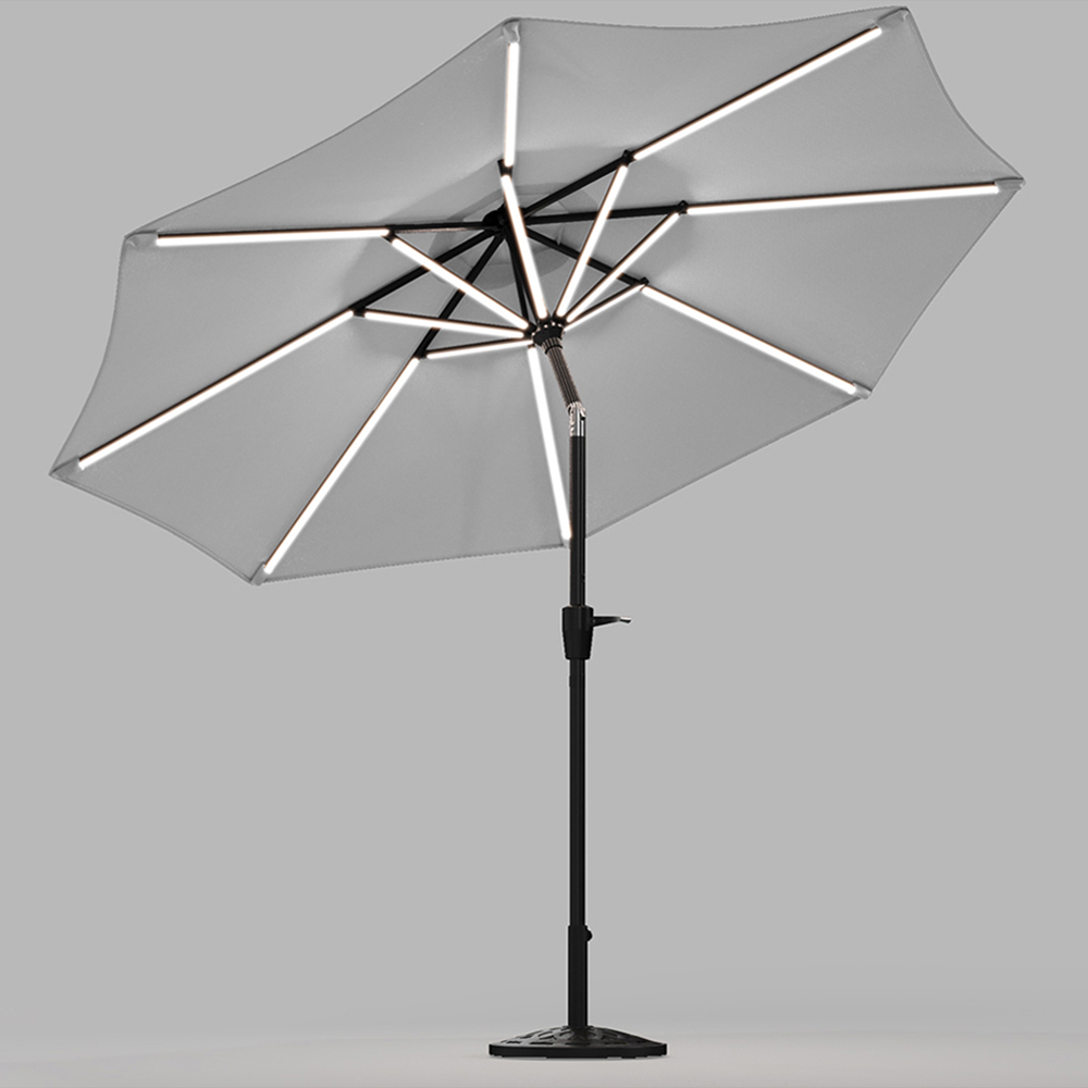 Evoking memories of sun-drenched holidays, this umbrella is as pleasing to the eye as it is easy to operate. A simple crank lift mechanism makes opening and closing effortless, while the manual tilt function allows precise angle adjustments for optimal shade against the sun and wind. As evening approaches, integrated LED strips transform the umbrella, creating a magical ambience for your outdoor space. The set also includes a stylish and supportive base.
