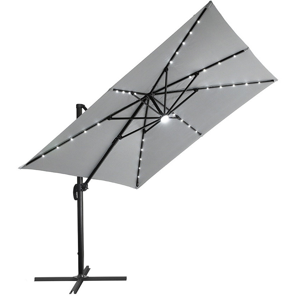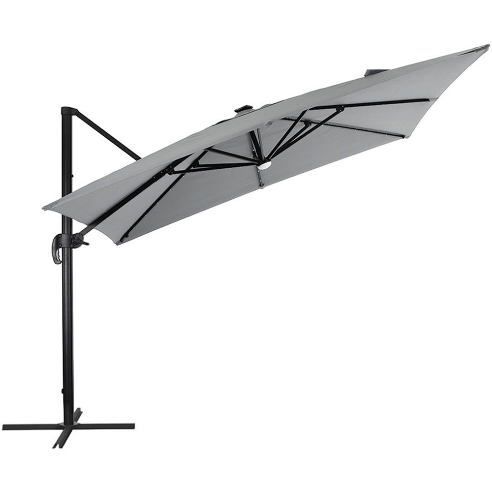 Living and Home Light Grey Square LED Rotatable Cantilever Parasol with Rose Cement Base 3m