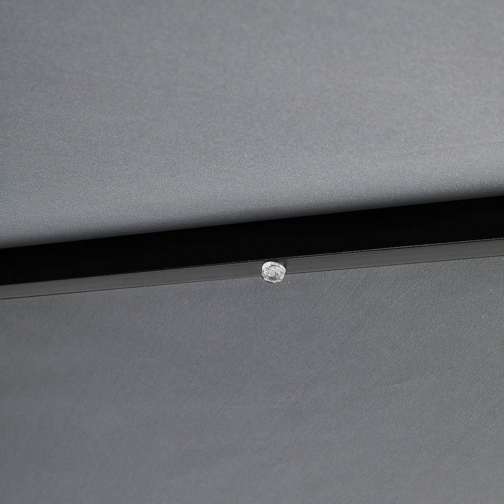 Bask in the shade with this elegant Cantilever Parasol. Built with a robust metal frame, the octagonal design provides ample shelter from the sun on hot days. The weather-resistant polyester canopy is crafted to endure the elements, ensuring years of outdoor use. A simple crank mechanism and adjustable handle allow for effortless angle adjustment. Each rib features an integrated LED light strip, perfect for illuminating your evenings. This set includes a stylish and sturdy 92L four-piece base for added support.