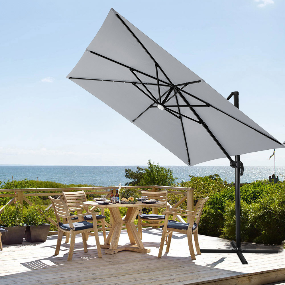 Living and Home Light Grey Square LED Rotatable Cantilever Parasol with Square Base 3m